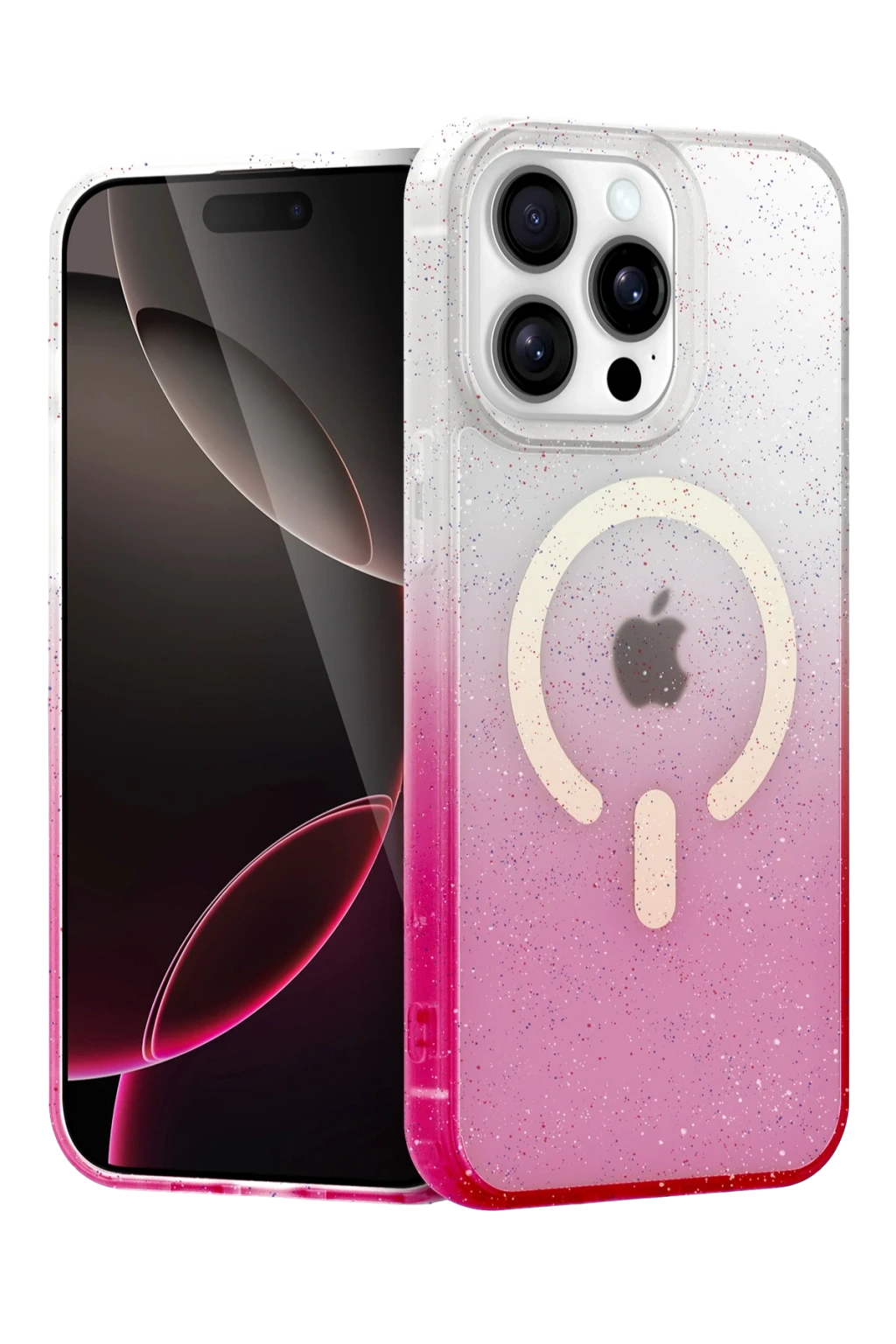 HarmonyAura Apple iPhone 14 Pro Max Pummel Shiny Magsafe Kapak - Pembe