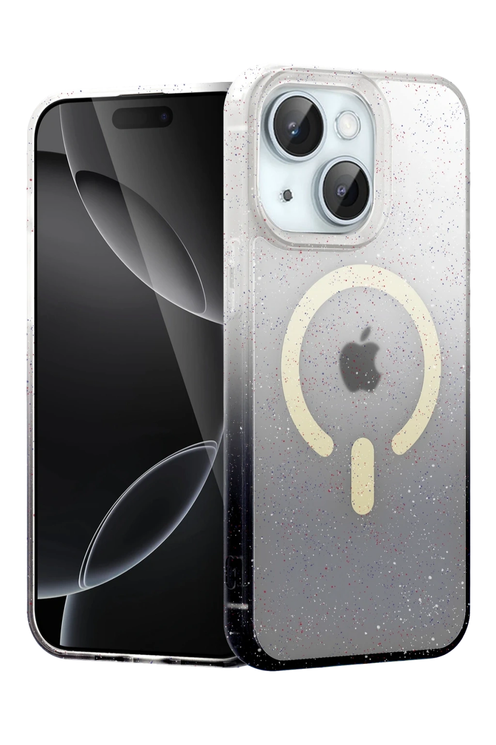 HarmonyAura Apple iPhone 15 Plus Pummel Shiny Magsafe Kapak - Siyah