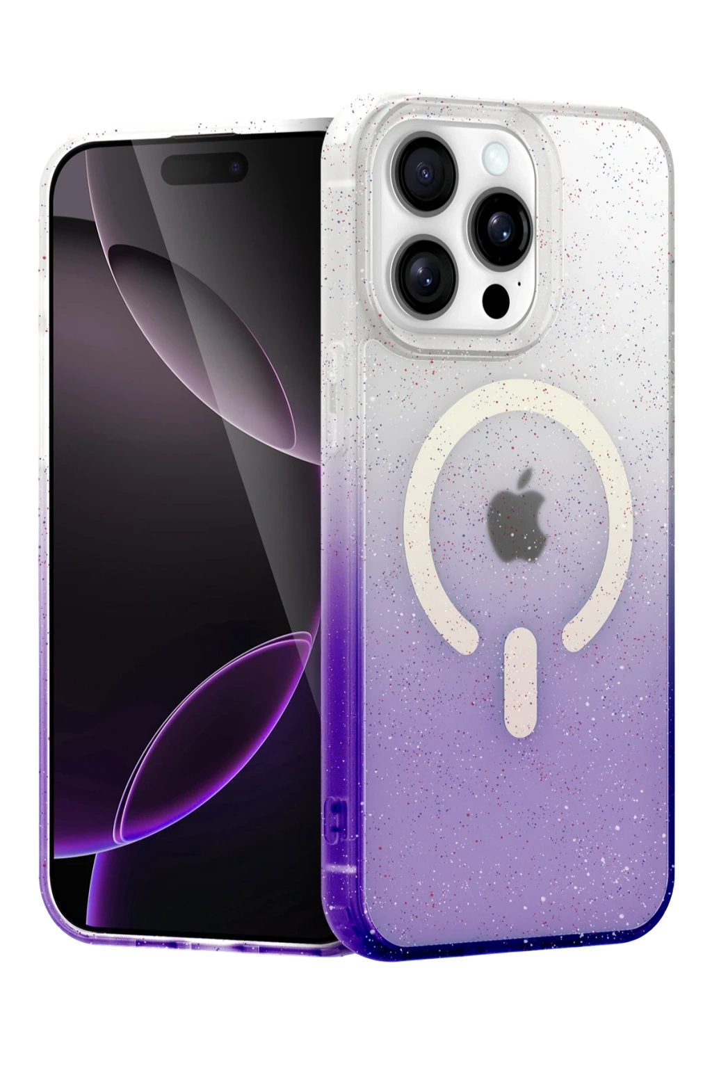 HarmonyAura Apple iPhone 15 Pro Max Pummel Shiny Magsafe Kapak - Mor