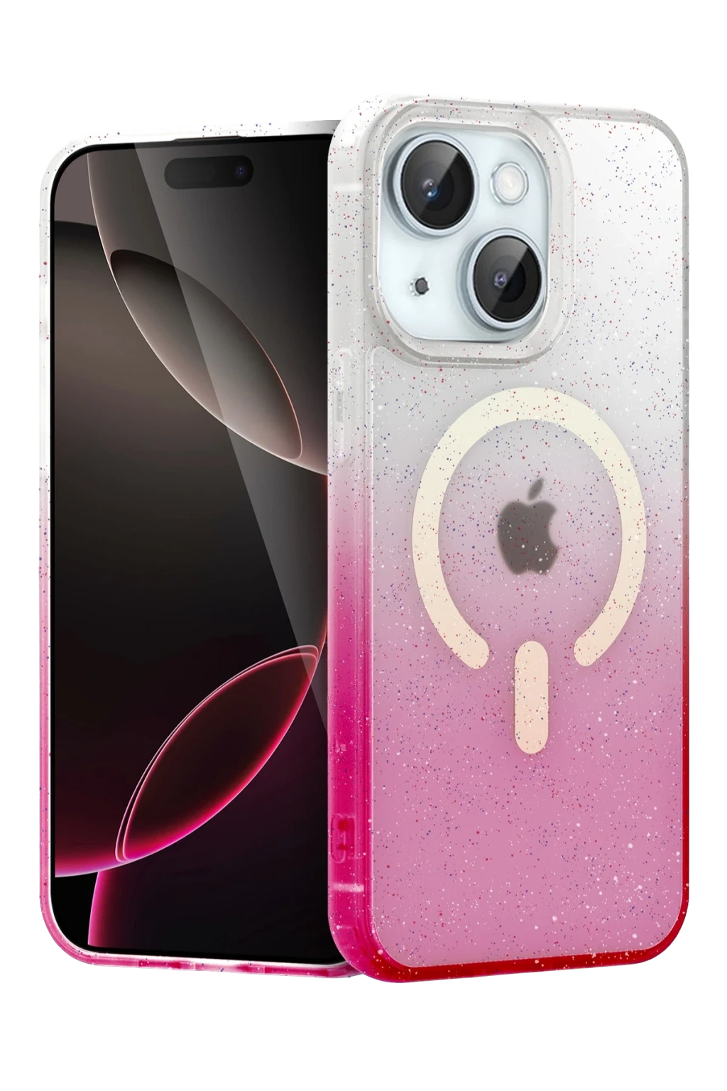HarmonyAura Apple iPhone 15 Pummel Shiny Magsafe Kapak - Pembe