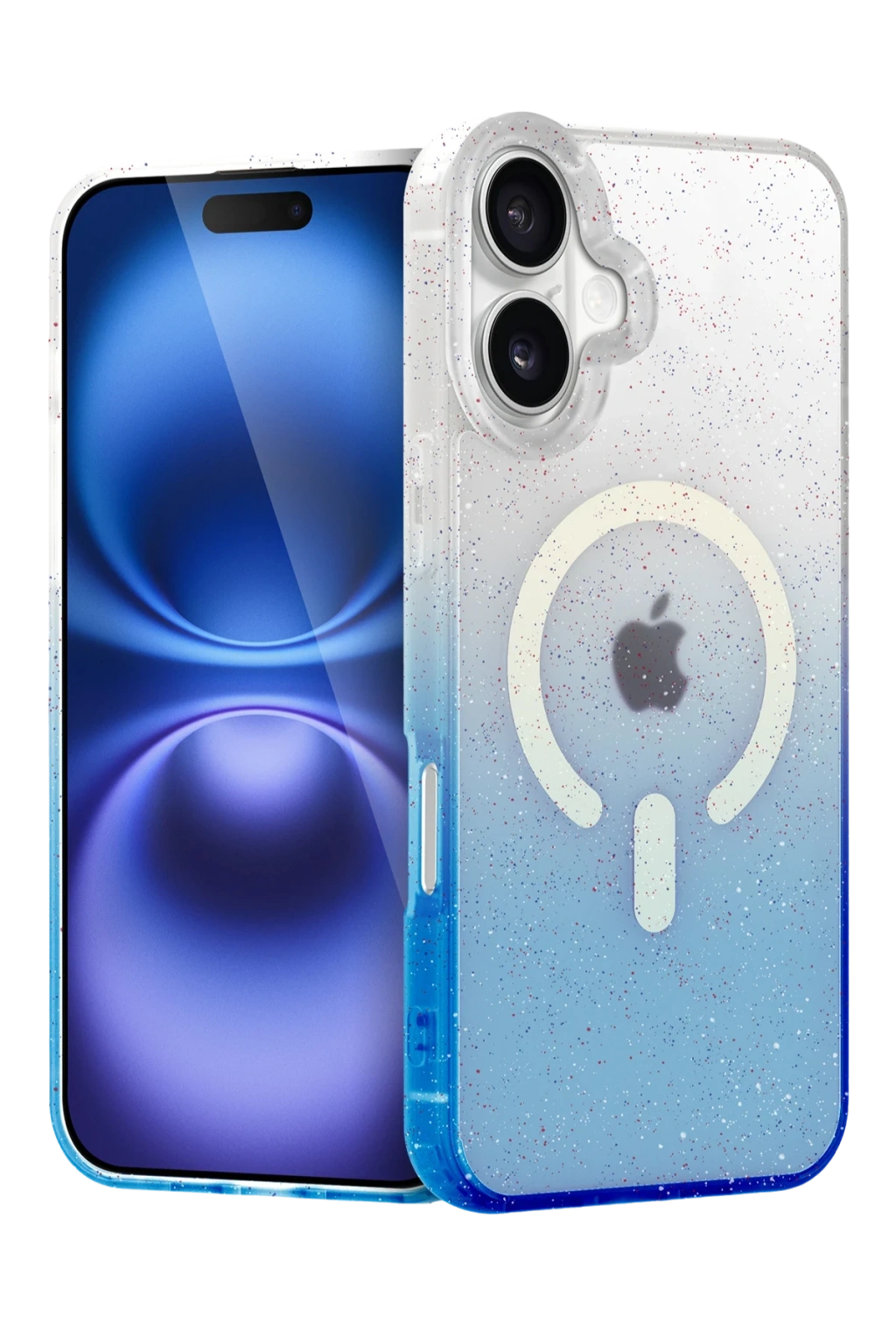 HarmonyAura Apple iPhone 16 Plus Pummel Shiny Magsafe Kapak - Mavi