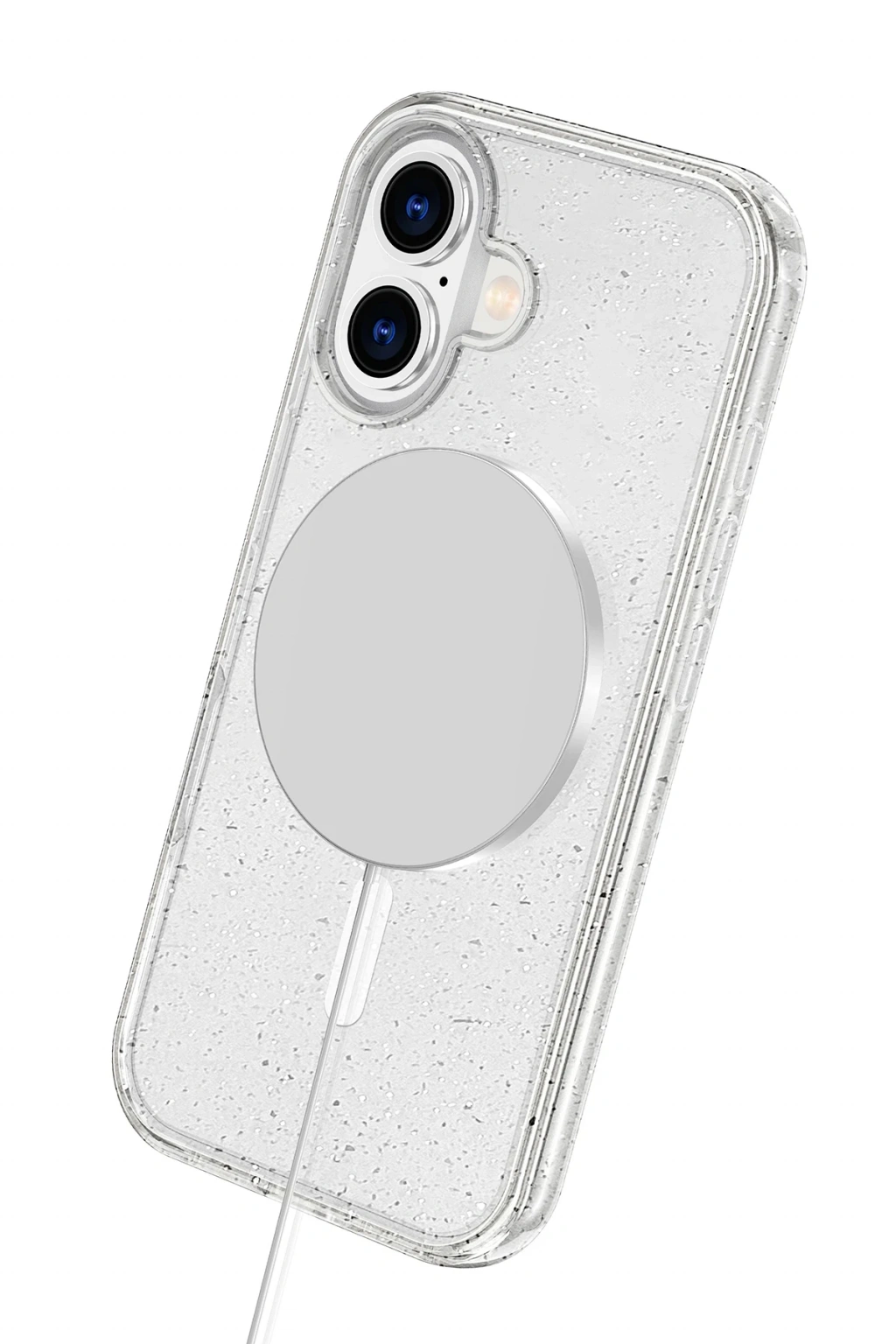 Glow MagSafe Kapak, telefonunuzu her açıdan öne çıkaran parlak ve şık bir tasarıma sahiptir. Simli arka planı, ışık altında parlayarak cihazınıza göz alıcı bir görünüm kazandırır.