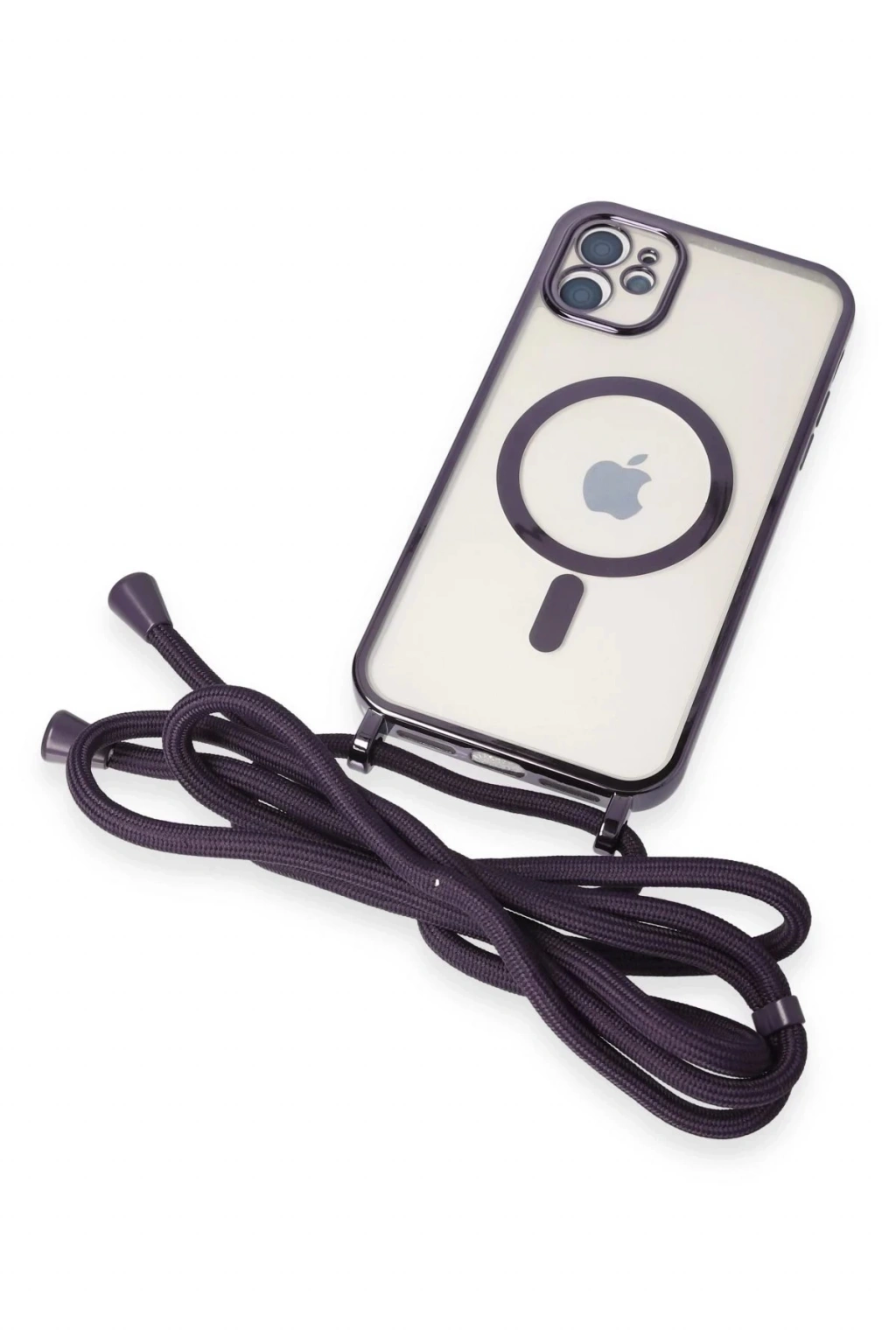 HarmonyAura Iphone 11 Kılıf Divo Lazer Askılı Magsafe Kapak - Derin Mor