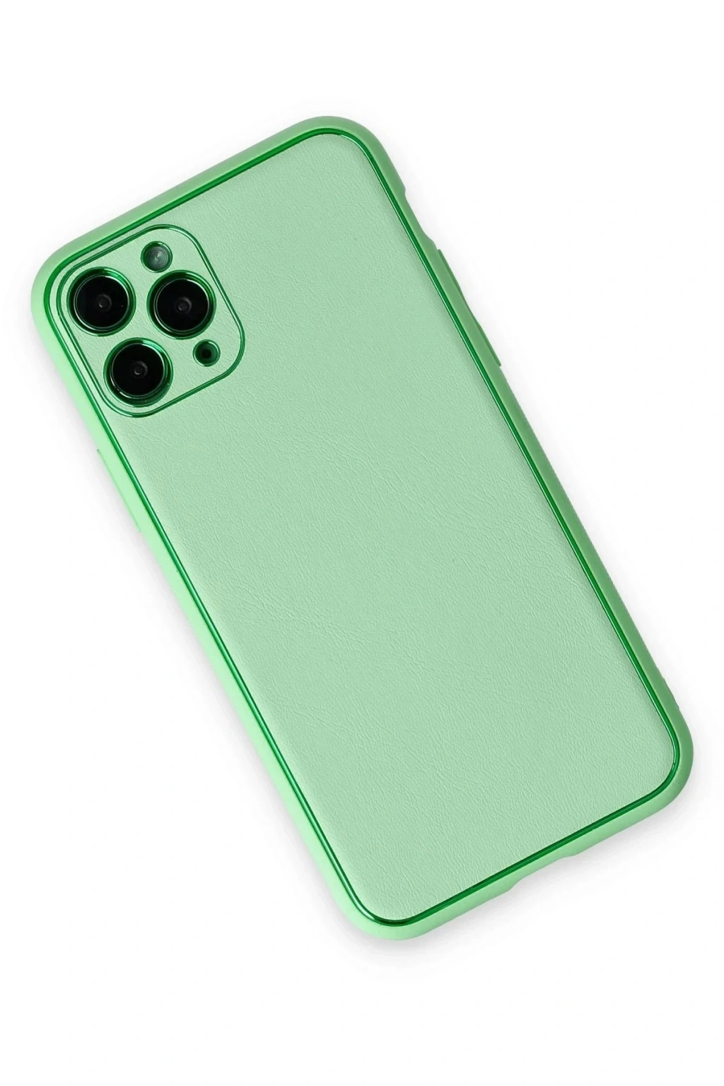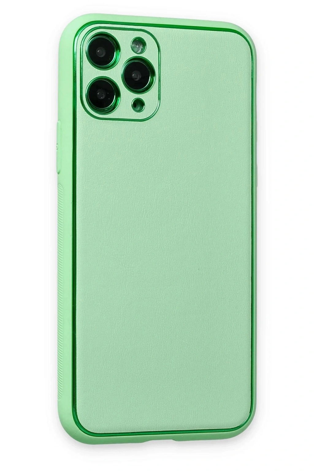 HarmonyAura Iphone 11 Pro Kılıf Coco Deri Silikon Kapak - Açık Yeşil