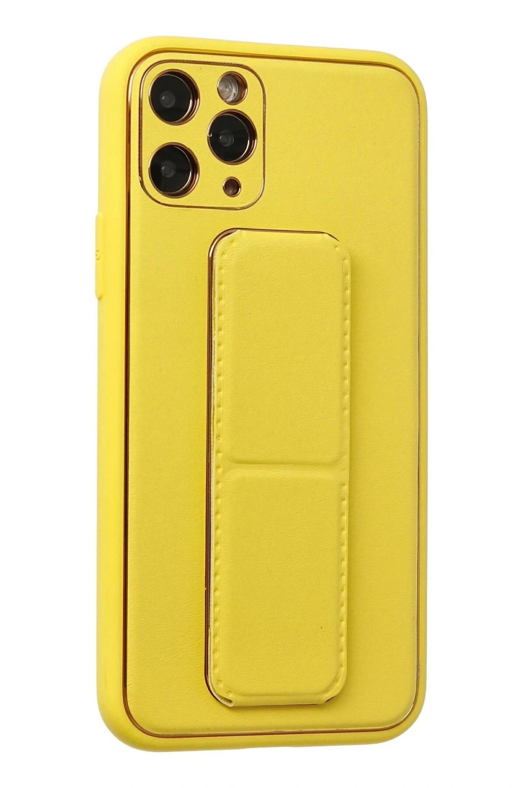 HarmonyAura Iphone 11 Pro Kılıf Coco Deri Standlı Kapak - Sarı
