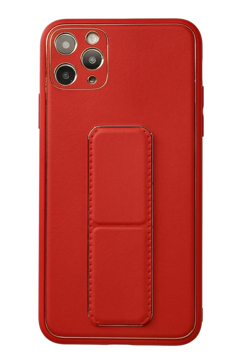 HarmonyAura Iphone 11 Pro Max Kılıf Coco Deri Standlı Kapak - Kırmızı