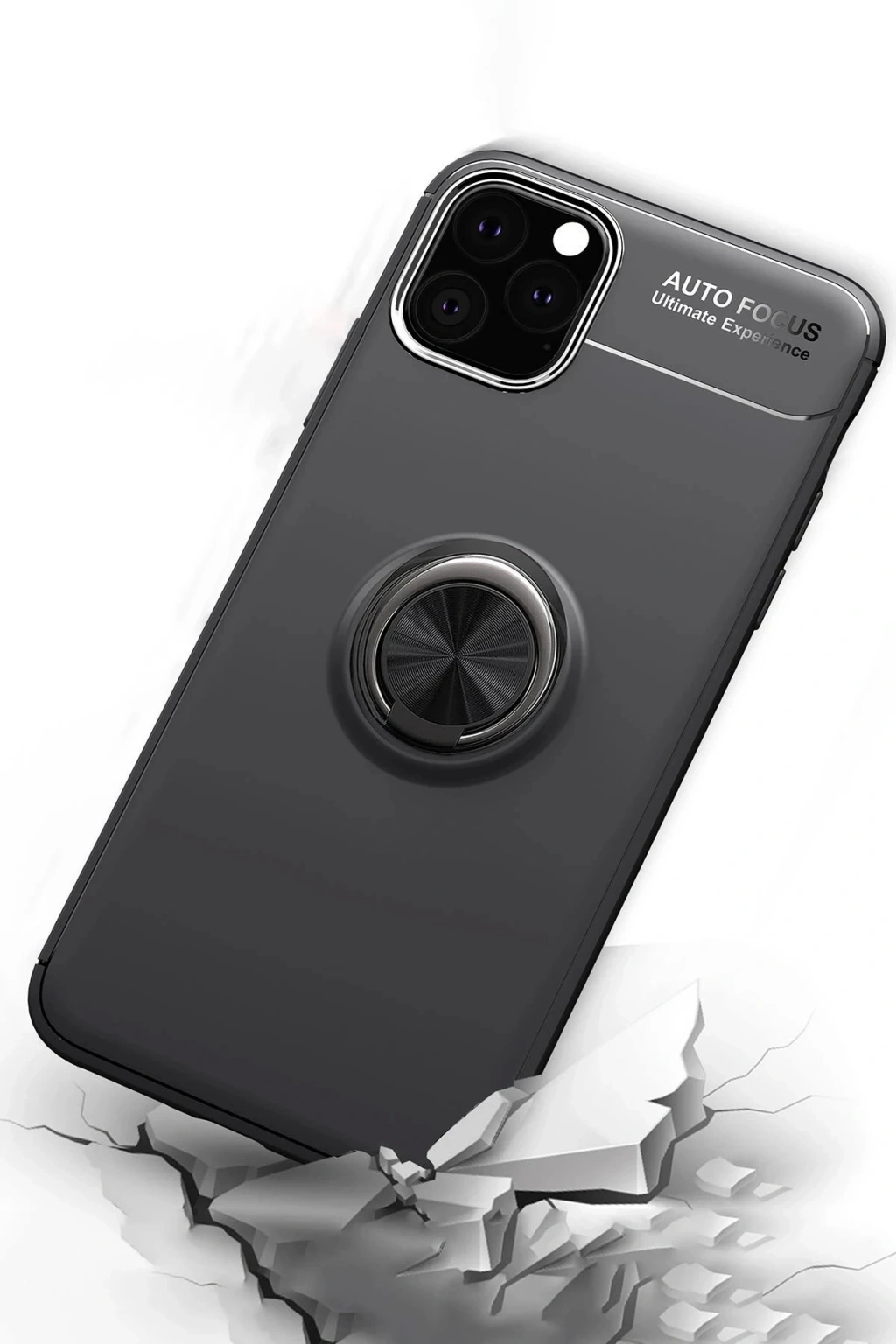 HarmonyAura Iphone 11 Pro Max Kılıf Range Yüzüklü Silikon - Siyah-mavi