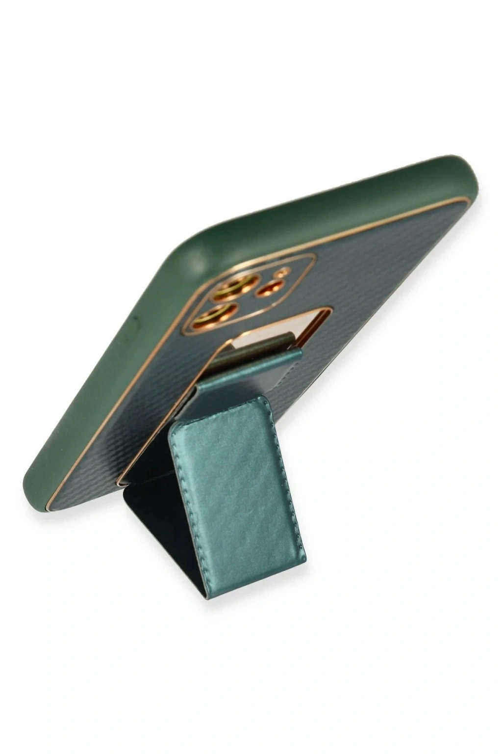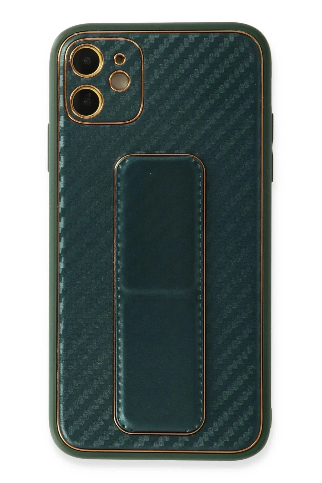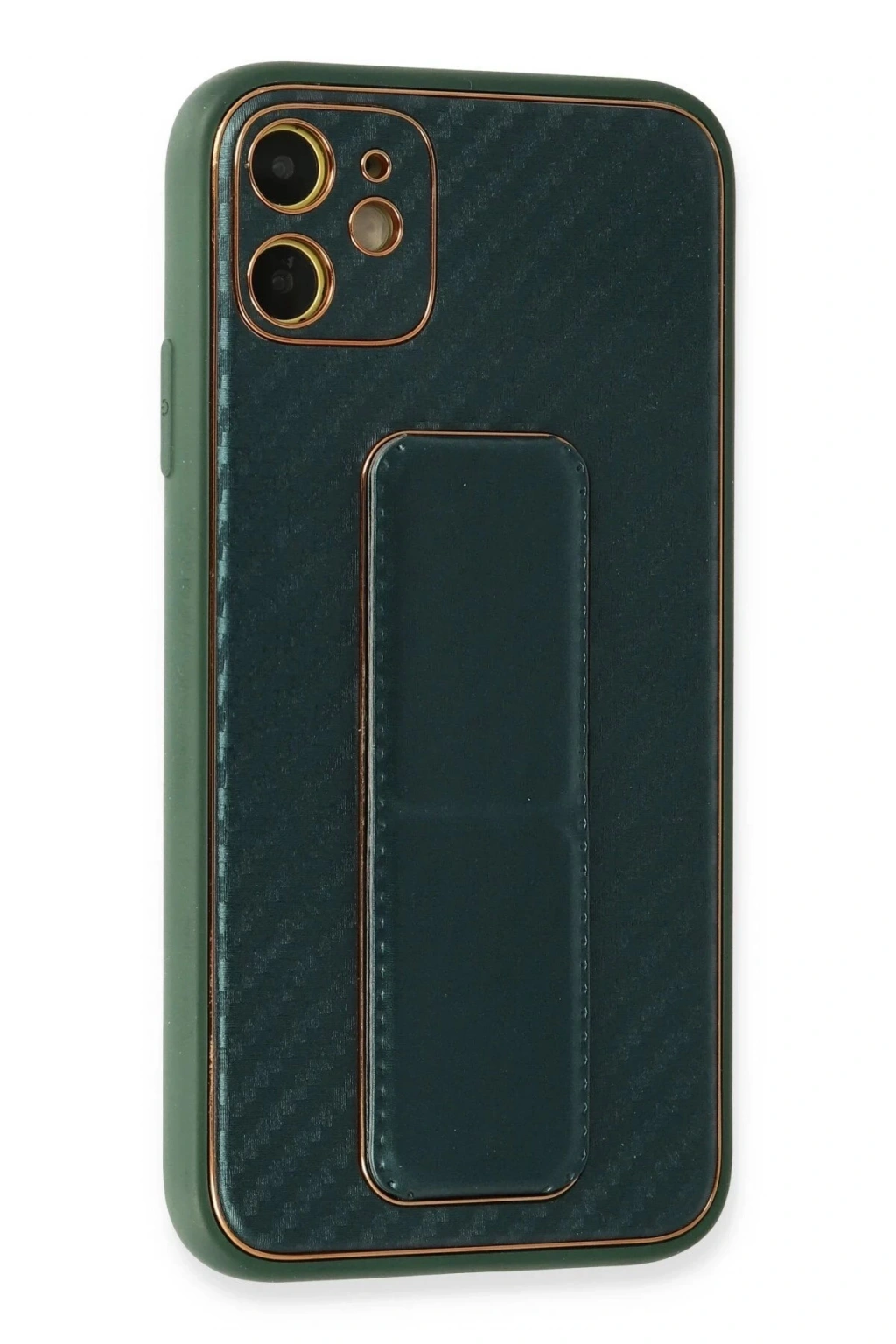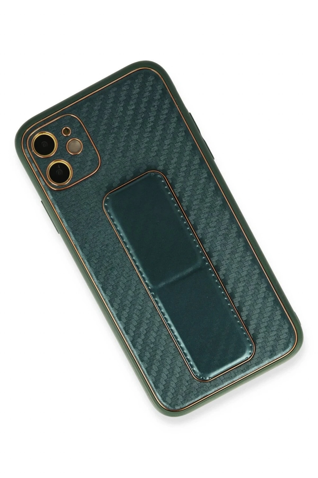 HarmonyAura Iphone 12 Kılıf Coco Karbon Standlı Kapak - Yeşil