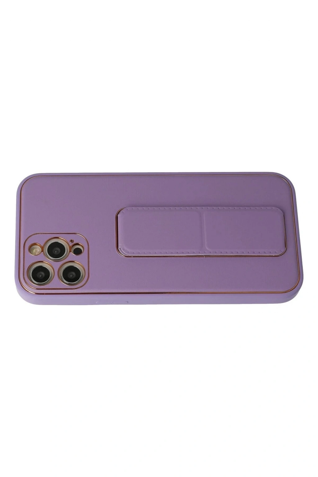 HarmonyAura Iphone 12 Pro Kılıf Coco Deri Standlı Kapak - Lila