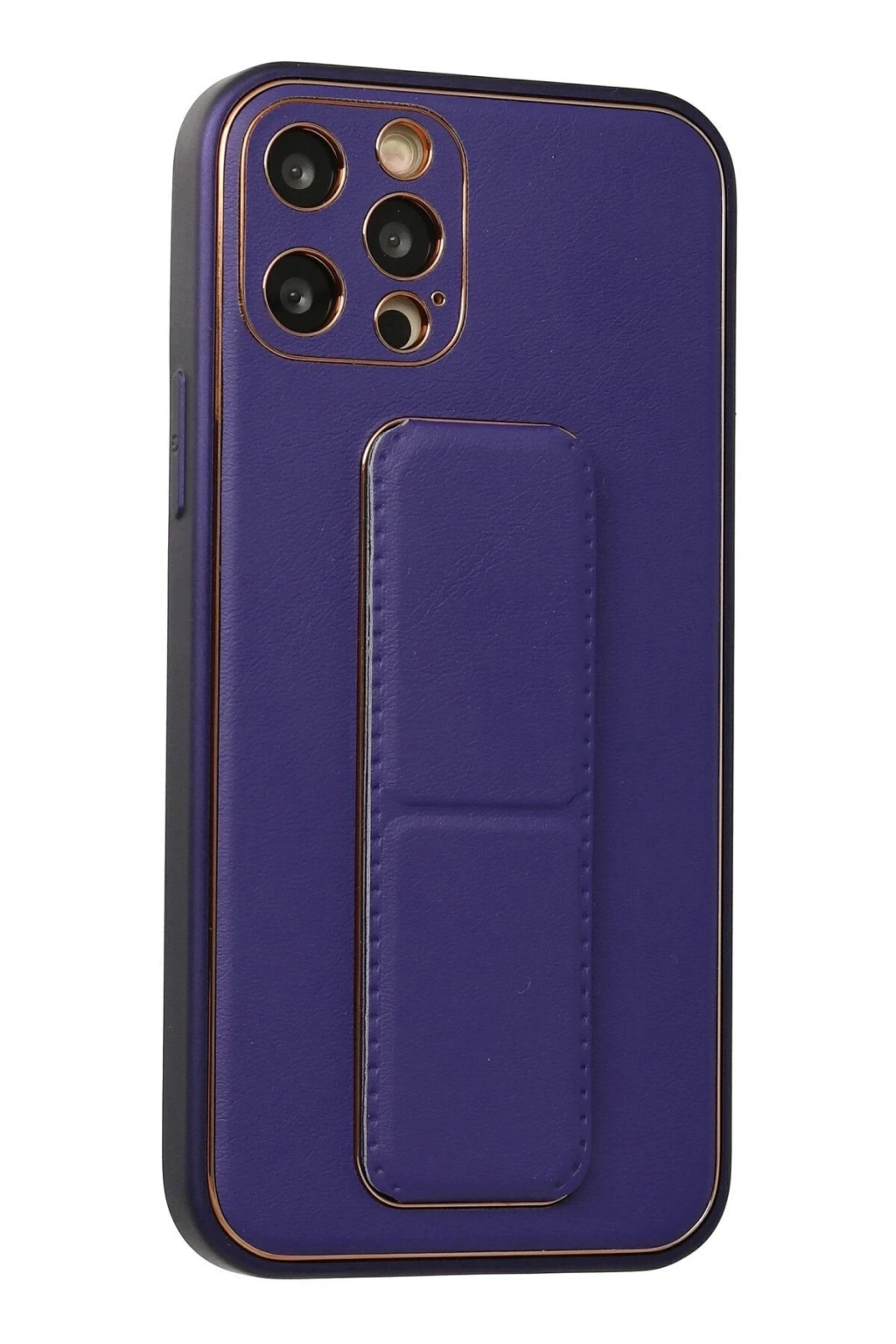 HarmonyAura Iphone 12 Pro Kılıf Coco Deri Standlı Kapak - Mor