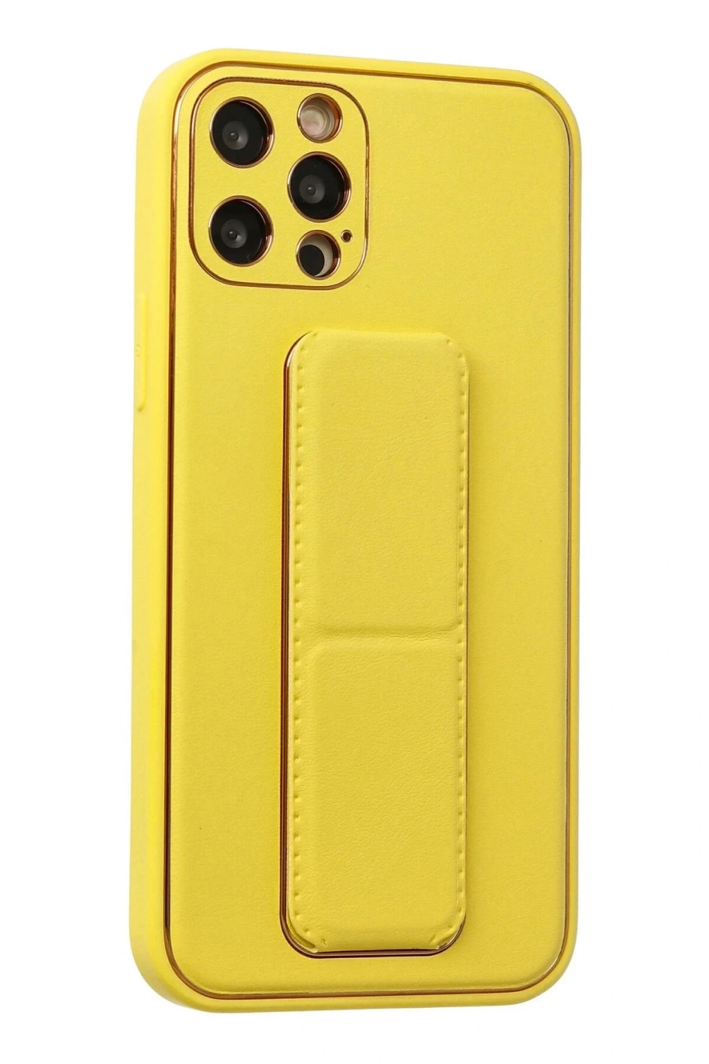 HarmonyAura Iphone 12 Pro Kılıf Coco Deri Standlı Kapak - Sarı