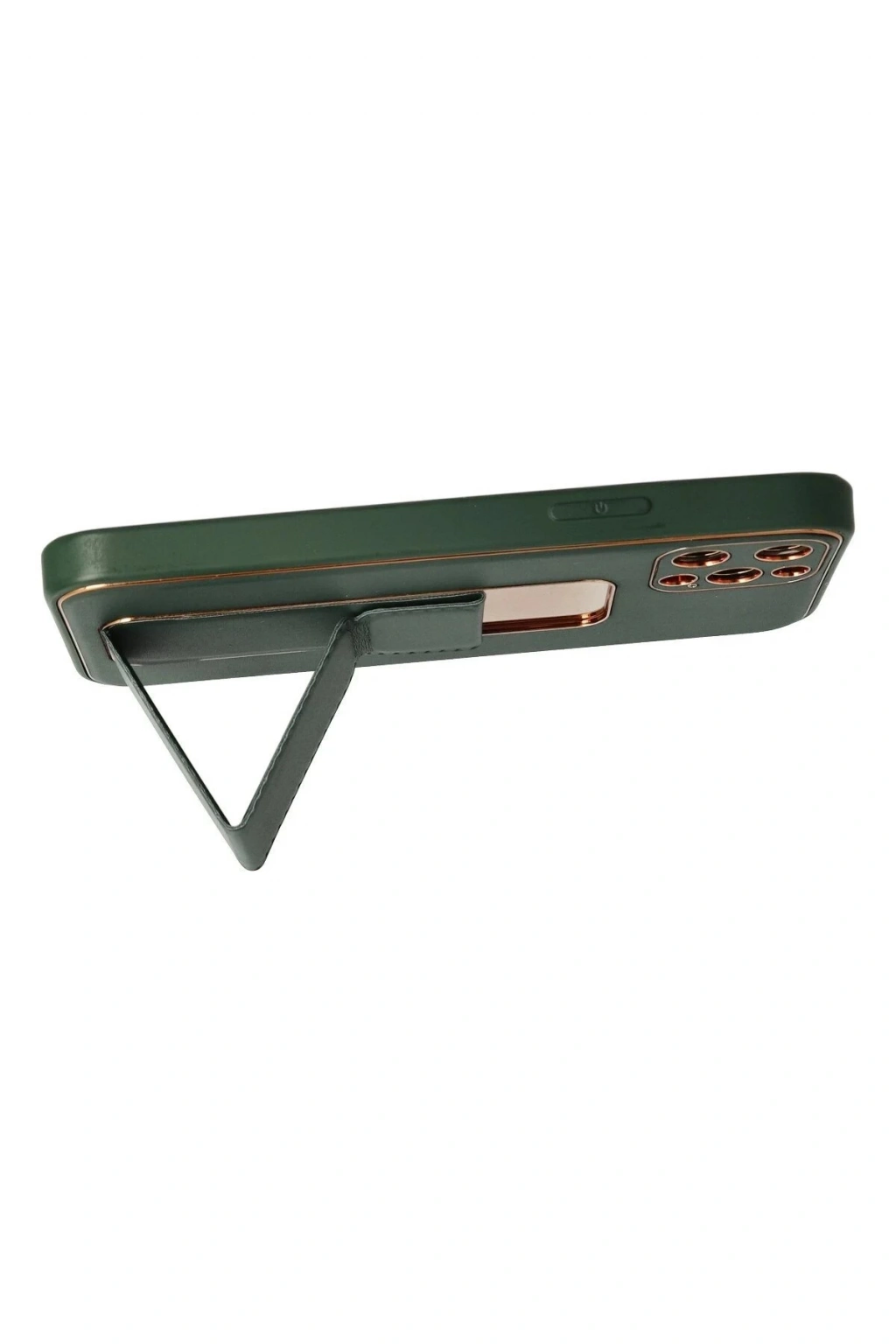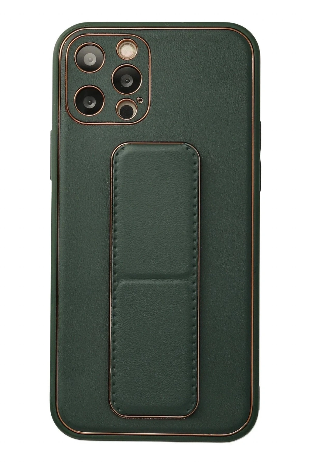 HarmonyAura Iphone 12 Pro Kılıf Coco Deri Standlı Kapak - Yeşil