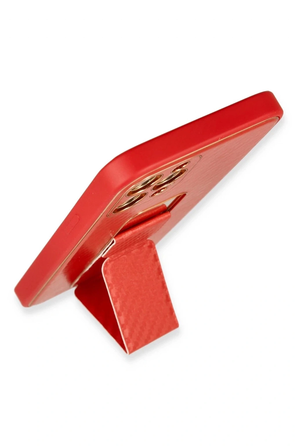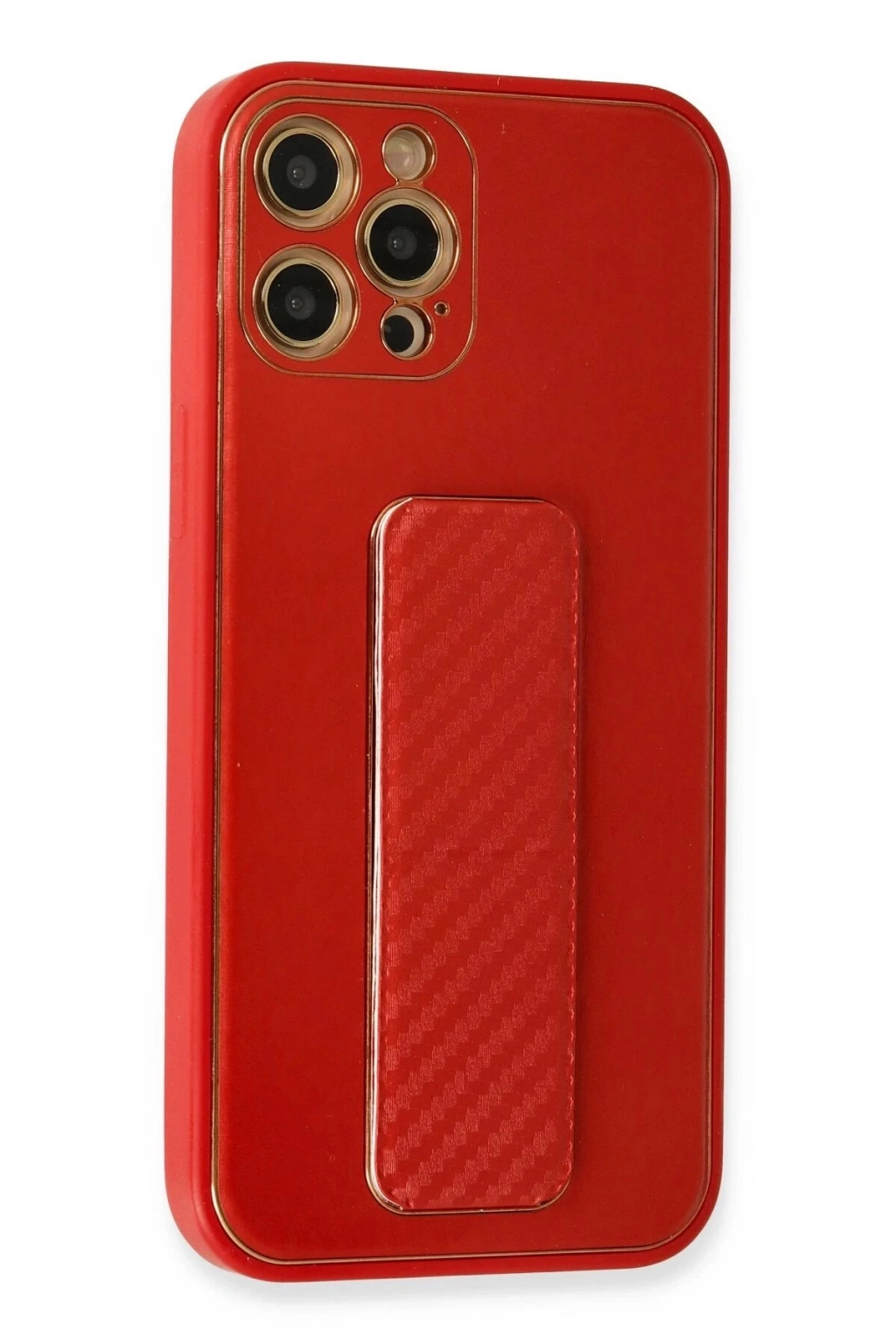 HarmonyAura Iphone 12 Pro Kılıf Coco Karbon Standlı Kapak - Kırmızı