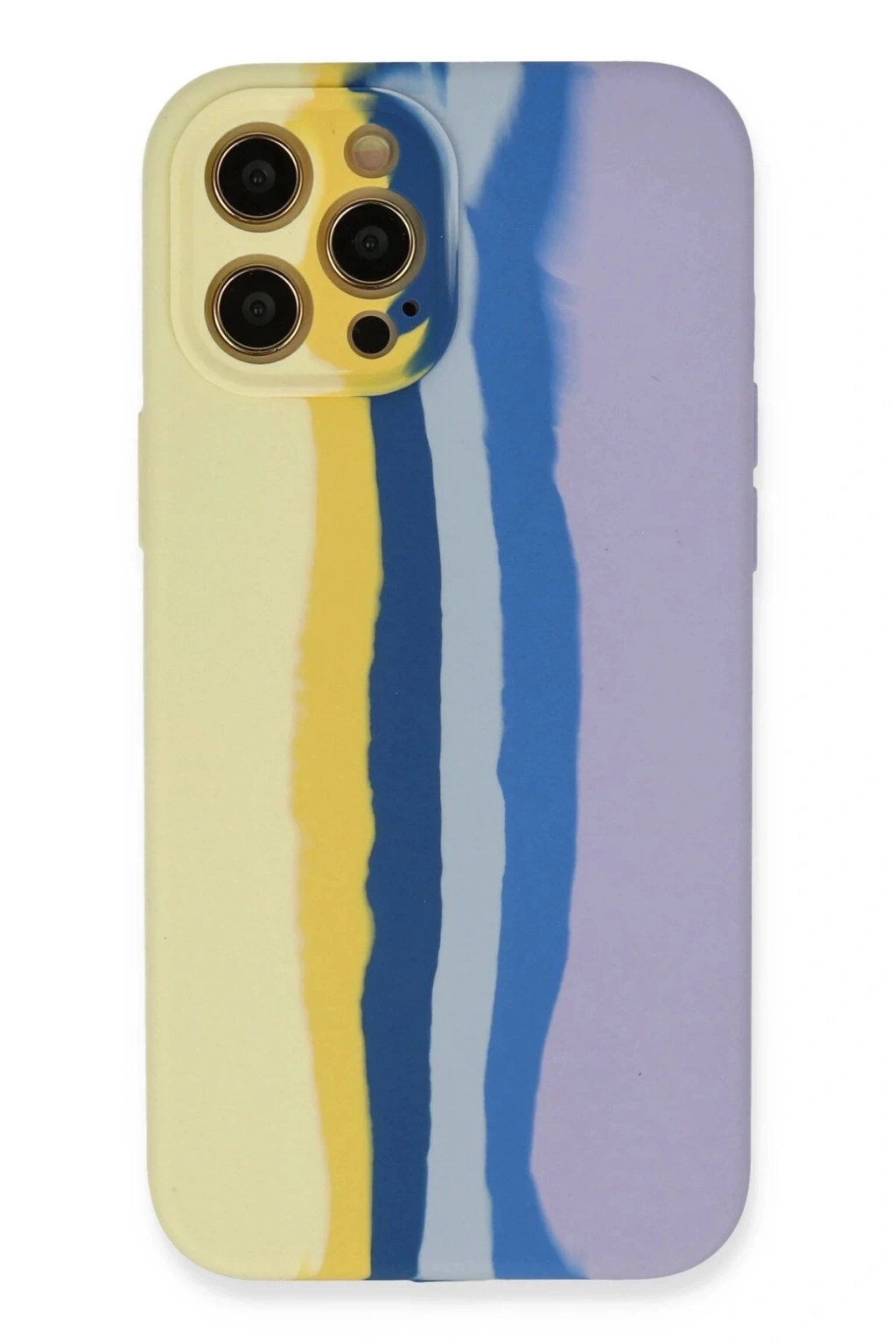 HarmonyAura Iphone 12 Pro Max Kılıf Ebruli Lansman Silikon - Sarı-lila