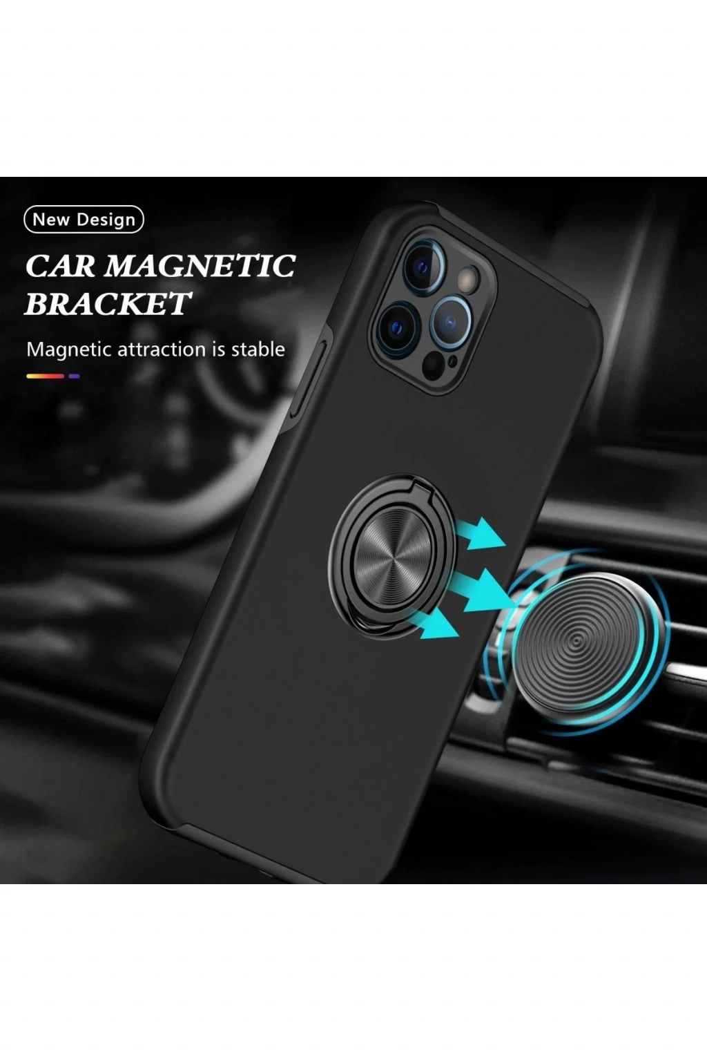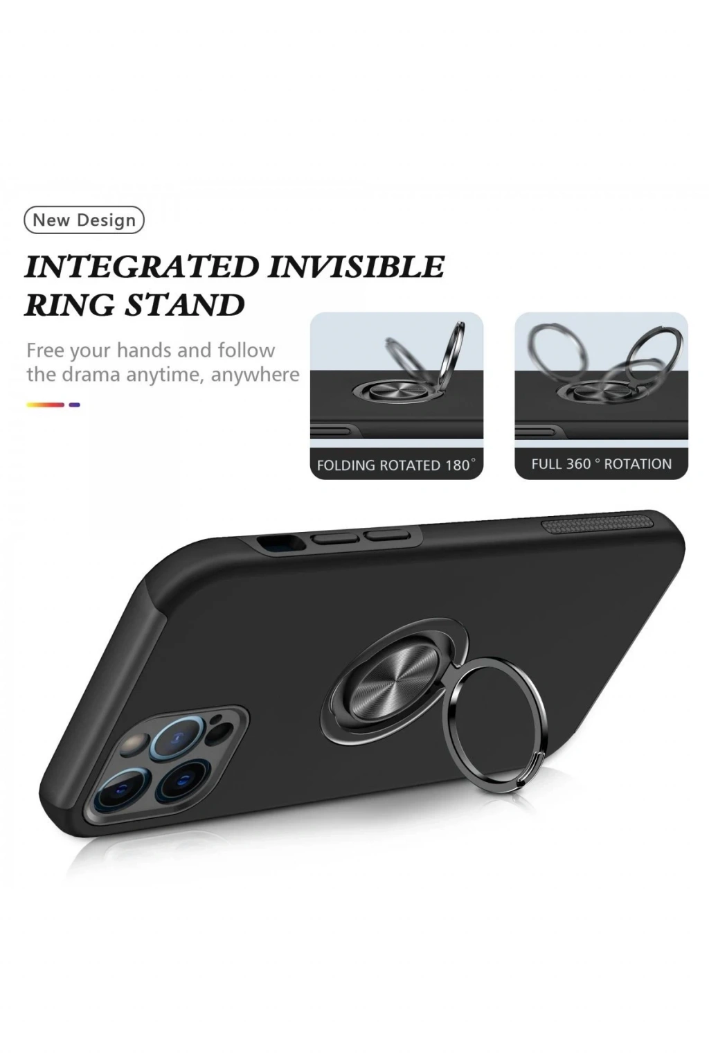 HarmonyAura Iphone 12 Pro Max Kılıf Elit Yüzüklü Kapak - Siyah