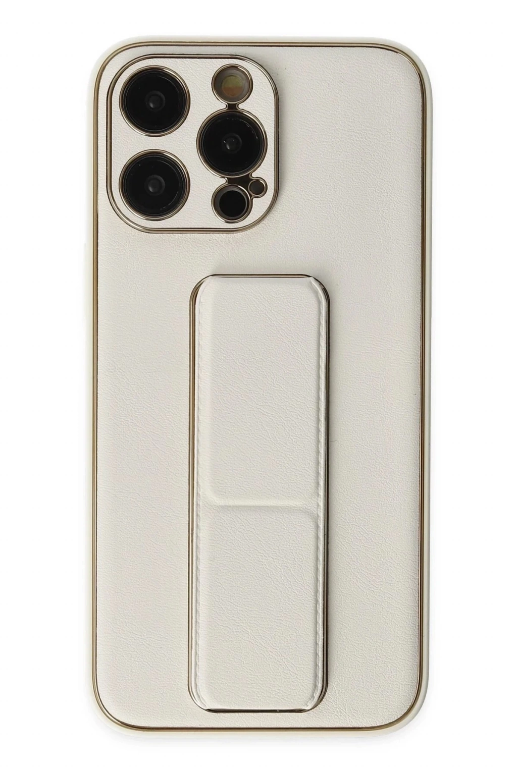 HarmonyAura Iphone 13 Pro Kılıf Coco Deri Standlı Kapak - Beyaz