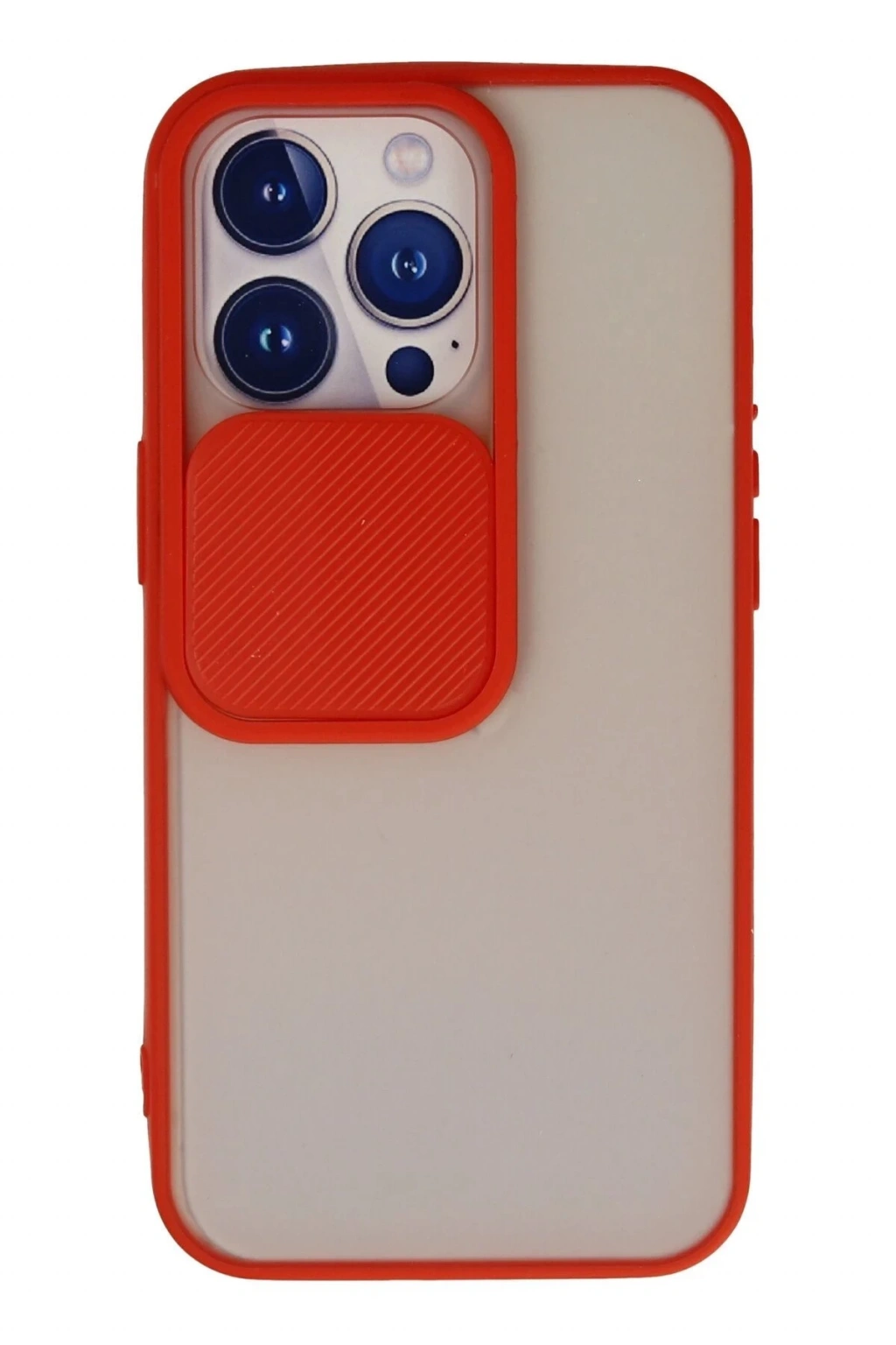 HarmonyAura Iphone 13 Pro Kılıf Palm Buzlu Kamera Sürgülü Silikon - Kırmızı