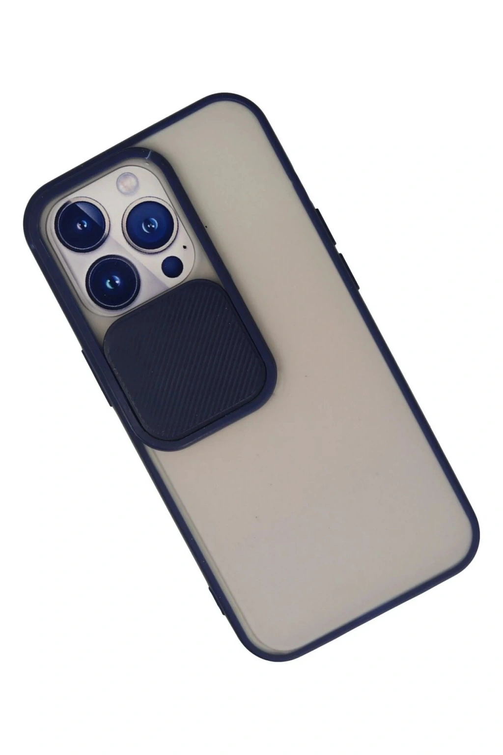 HarmonyAura Iphone 13 Pro Kılıf Palm Buzlu Kamera Sürgülü Silikon - Lacivert