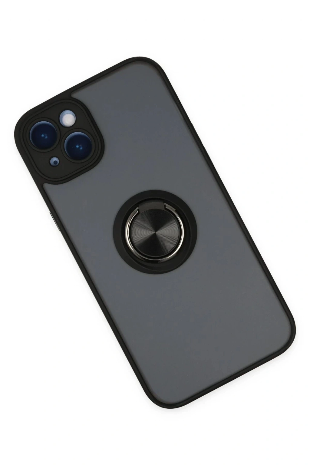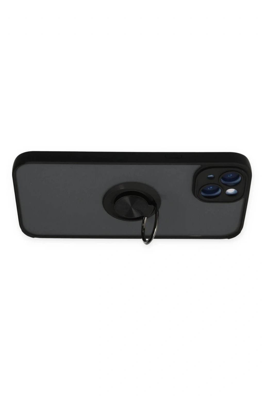 HarmonyAura Iphone 14 Kılıf Montreal Yüzüklü Silikon Kapak - Siyah