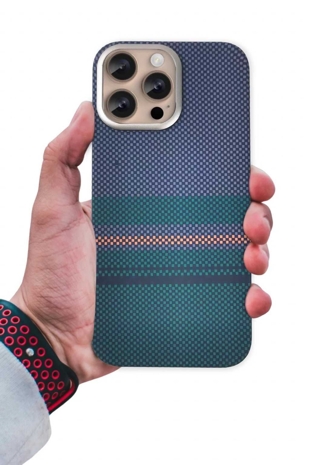 Sağlam, lüks ve hafif bir kılıftır sert plastik ve metal kamera çerçevesiyle tam koruma sağlar. Şık karbon fiber tasarımı modern bir görünüm sağlarken yerleşik MagSafe uyumluluğu da aksesuarların kolay şarj edilmesini ve bağlanmasını sağlar.
