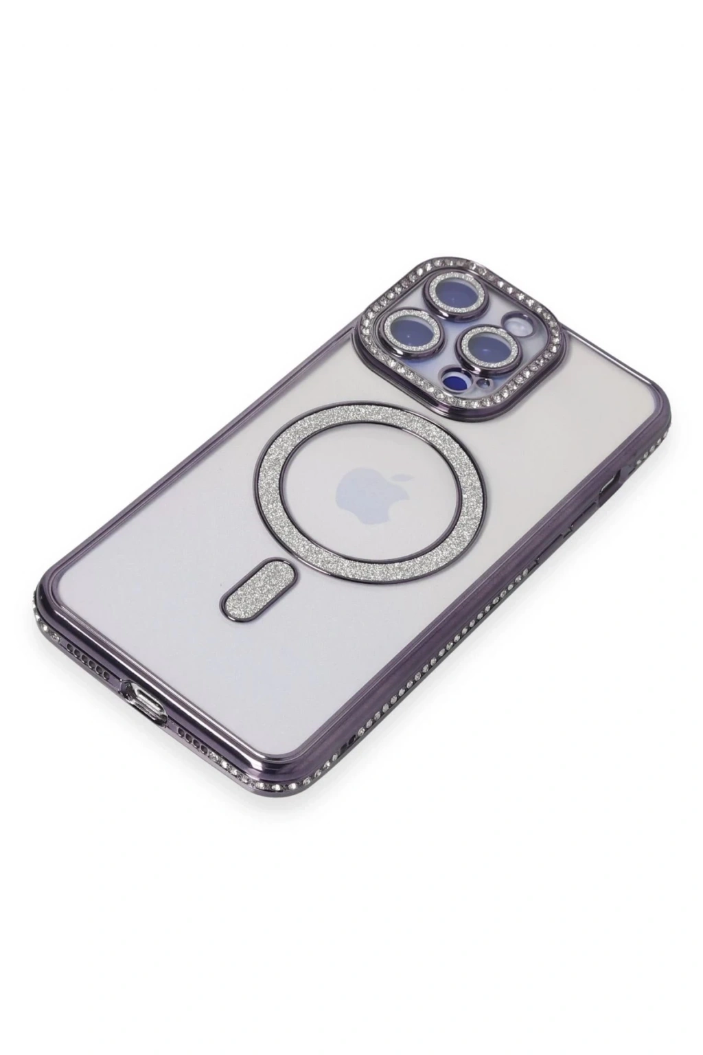 HarmonyAura Iphone 14 Pro Max Kılıf Joke Simli Magneticsafe Kılıf - Derin Mor