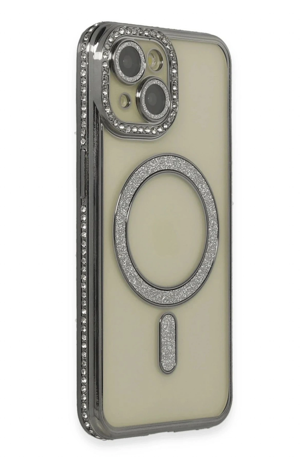 HarmonyAura Iphone 15 Kılıf Joke Simli Magneticsafe Kılıf - Gri