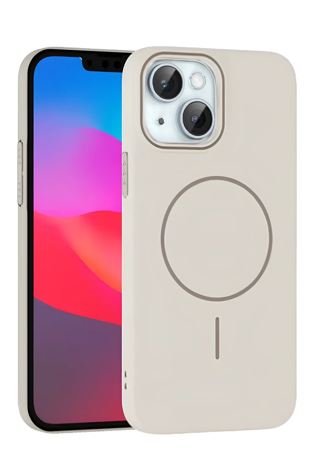 HarmonyAura iPhone 15 Plus Broş Magsafe Kapak - Krem