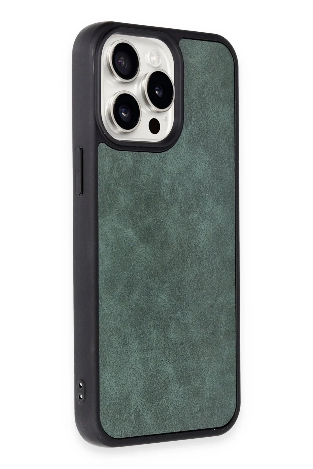 HarmonyAura Iphone 15 Pro Max Kılıf Aras Deri Kapak - Koyu Yeşil