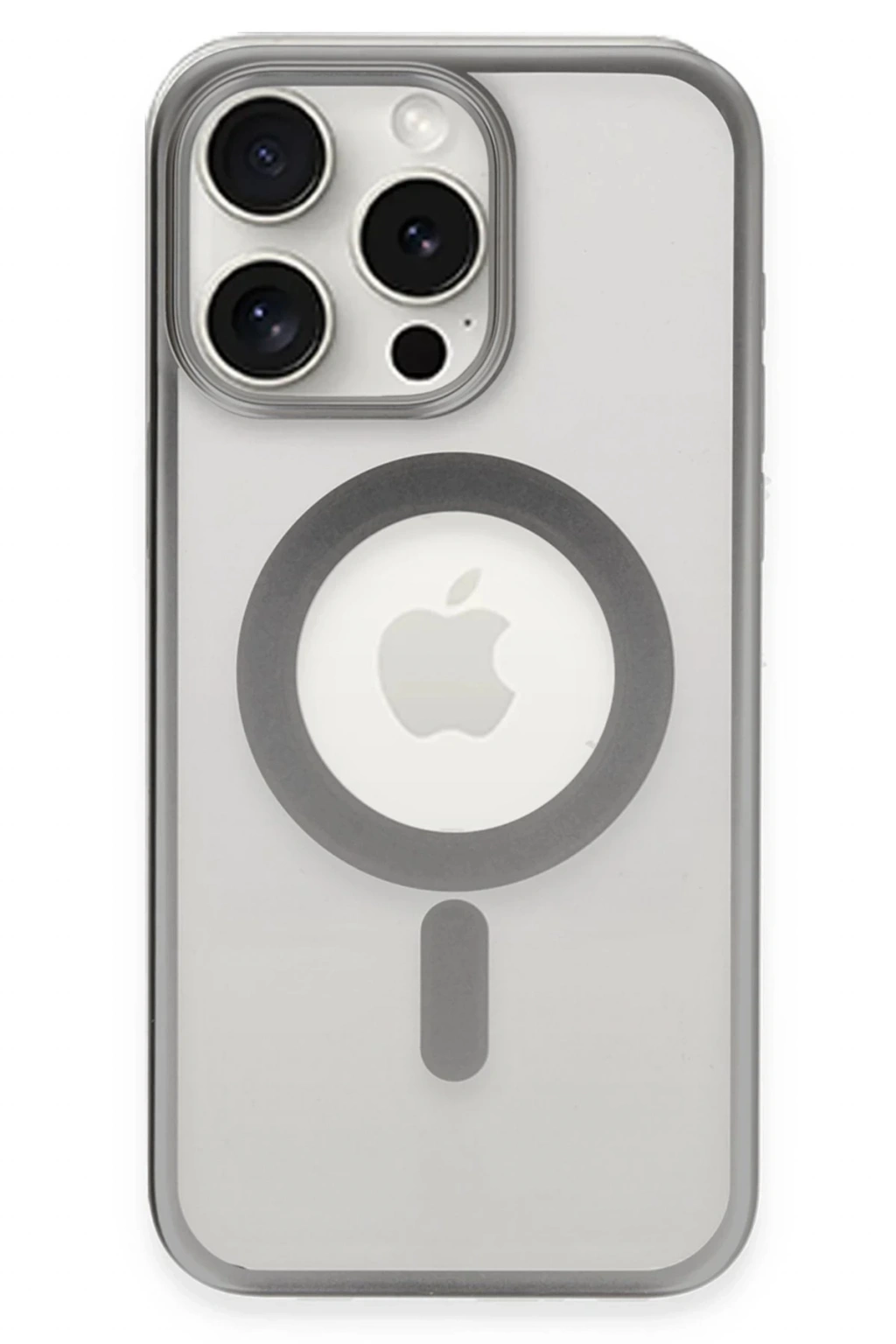 HarmonyAura Iphone 15 Pro Max Kılıf Erozi Magsafe Kapak - Gümüş