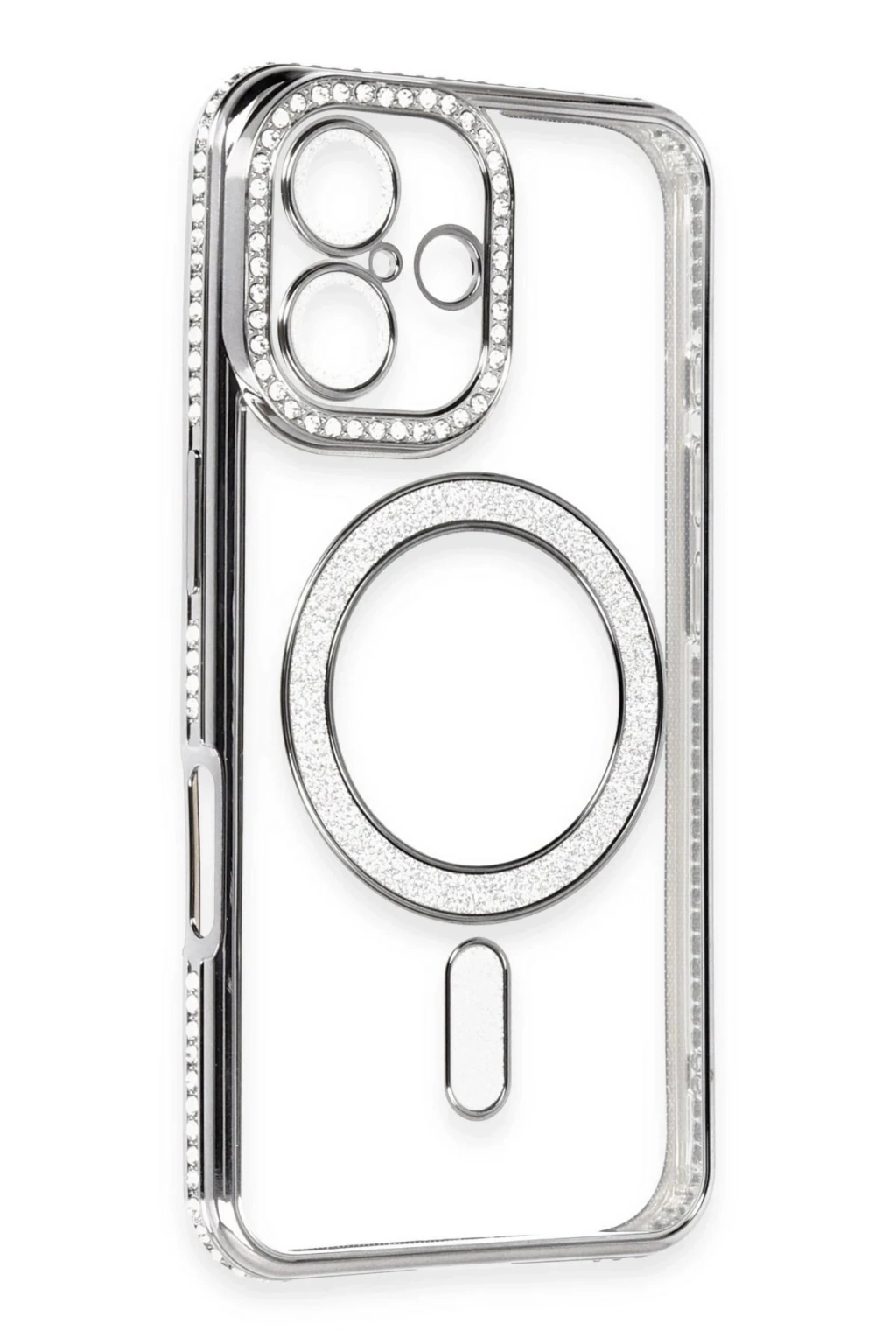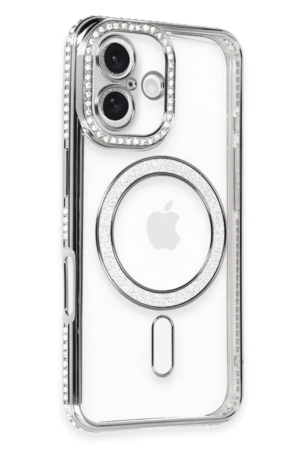 HarmonyAura Iphone 16 Kılıf Joke Simli Magneticsafe Kılıf - Gri
