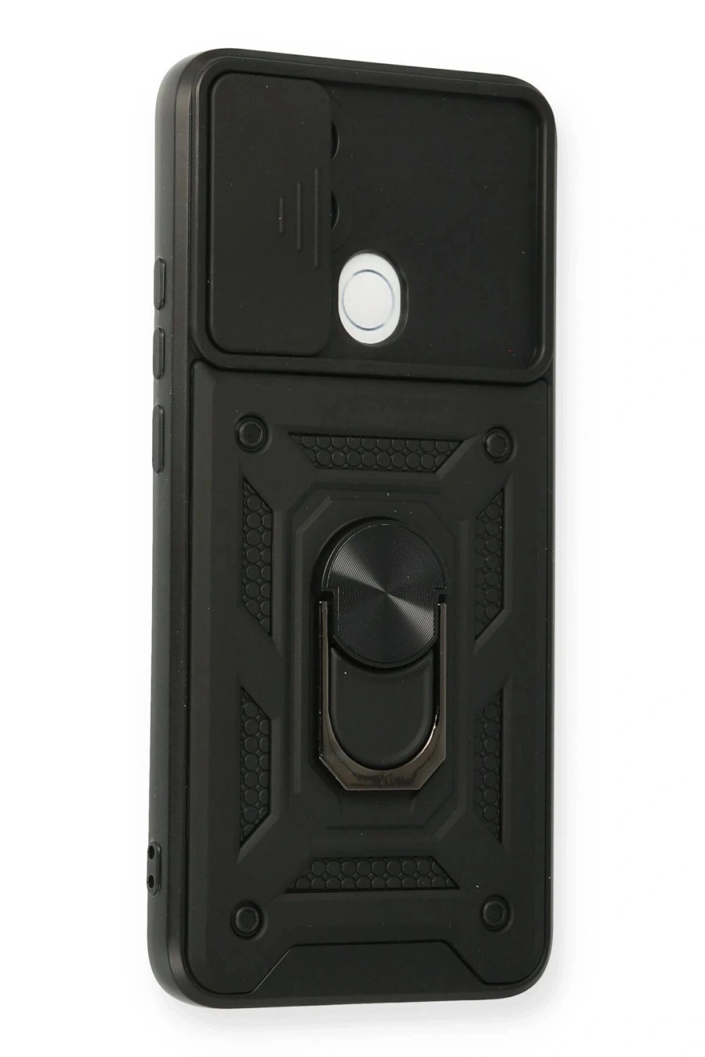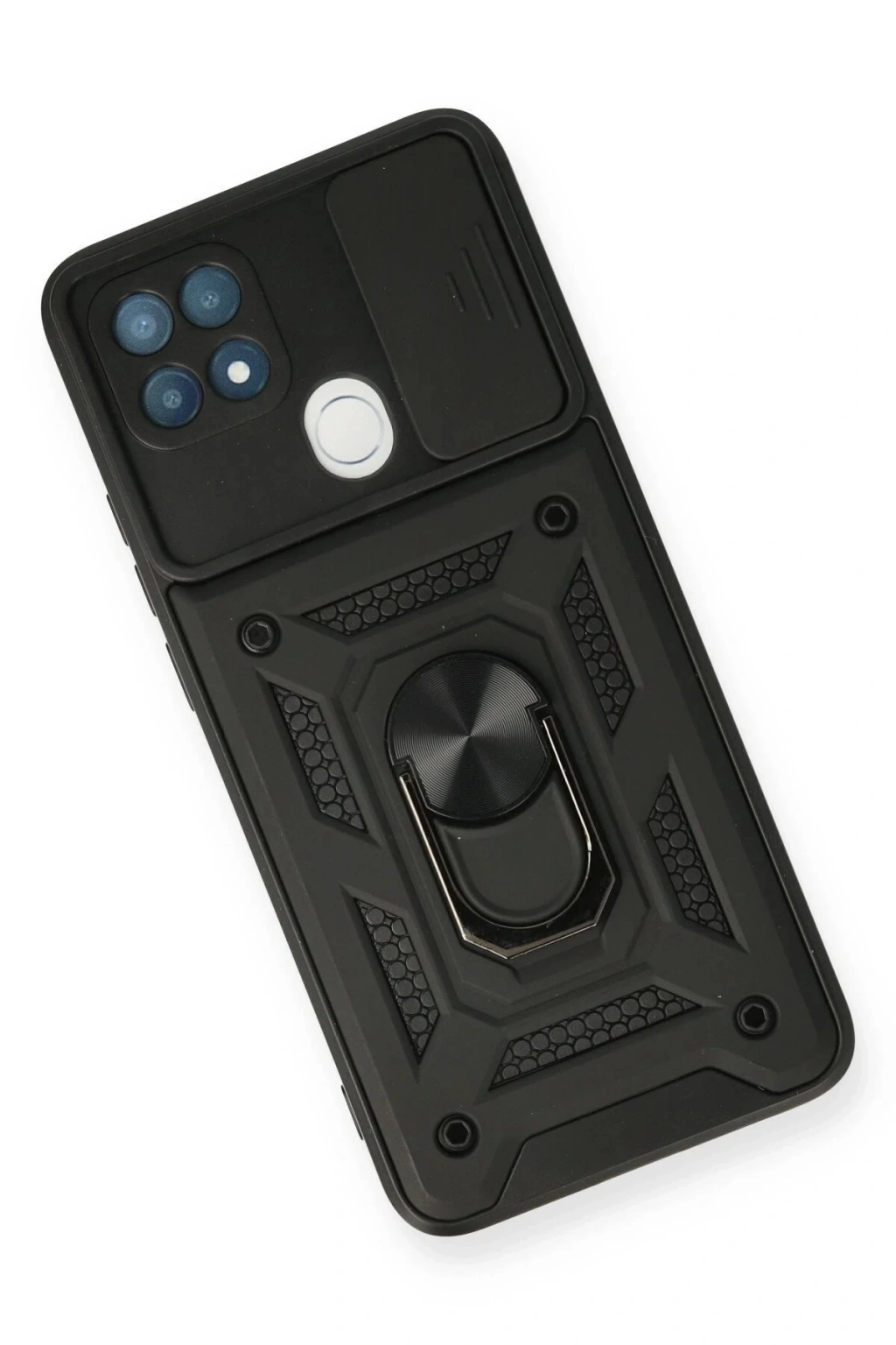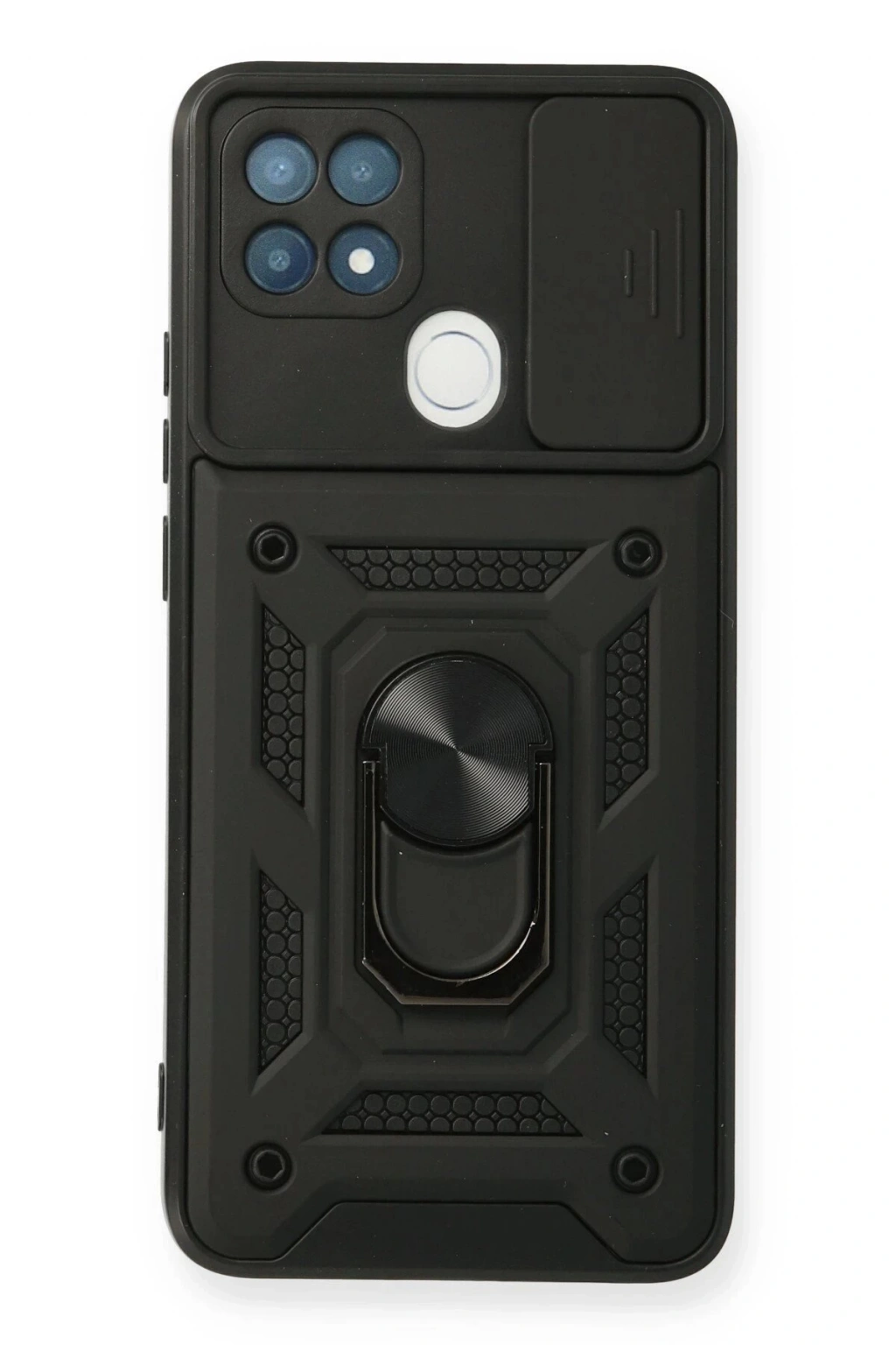 HarmonyAura Oppo A15 Kılıf Pars Lens Yüzüklü Silikon - Siyah