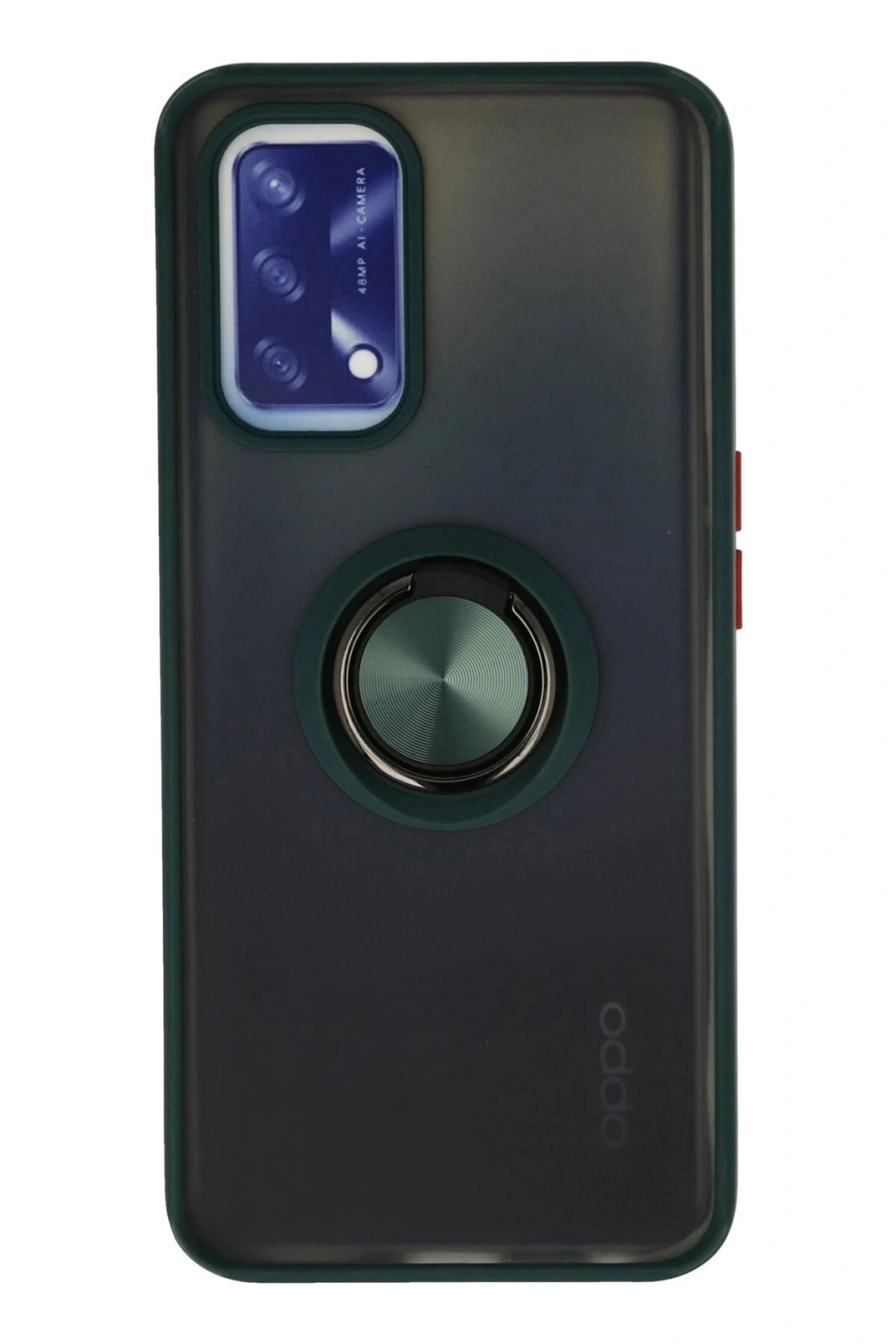 HarmonyAura Oppo A74 4g Kılıf Montreal Yüzüklü Silikon Kapak - Yeşil