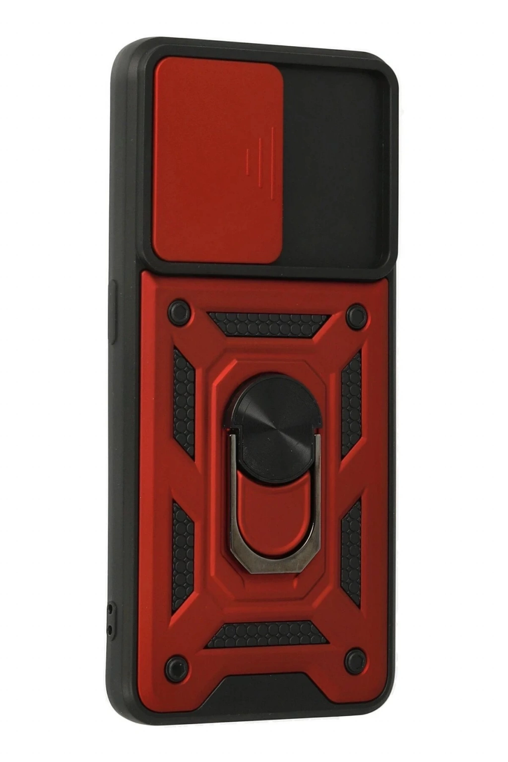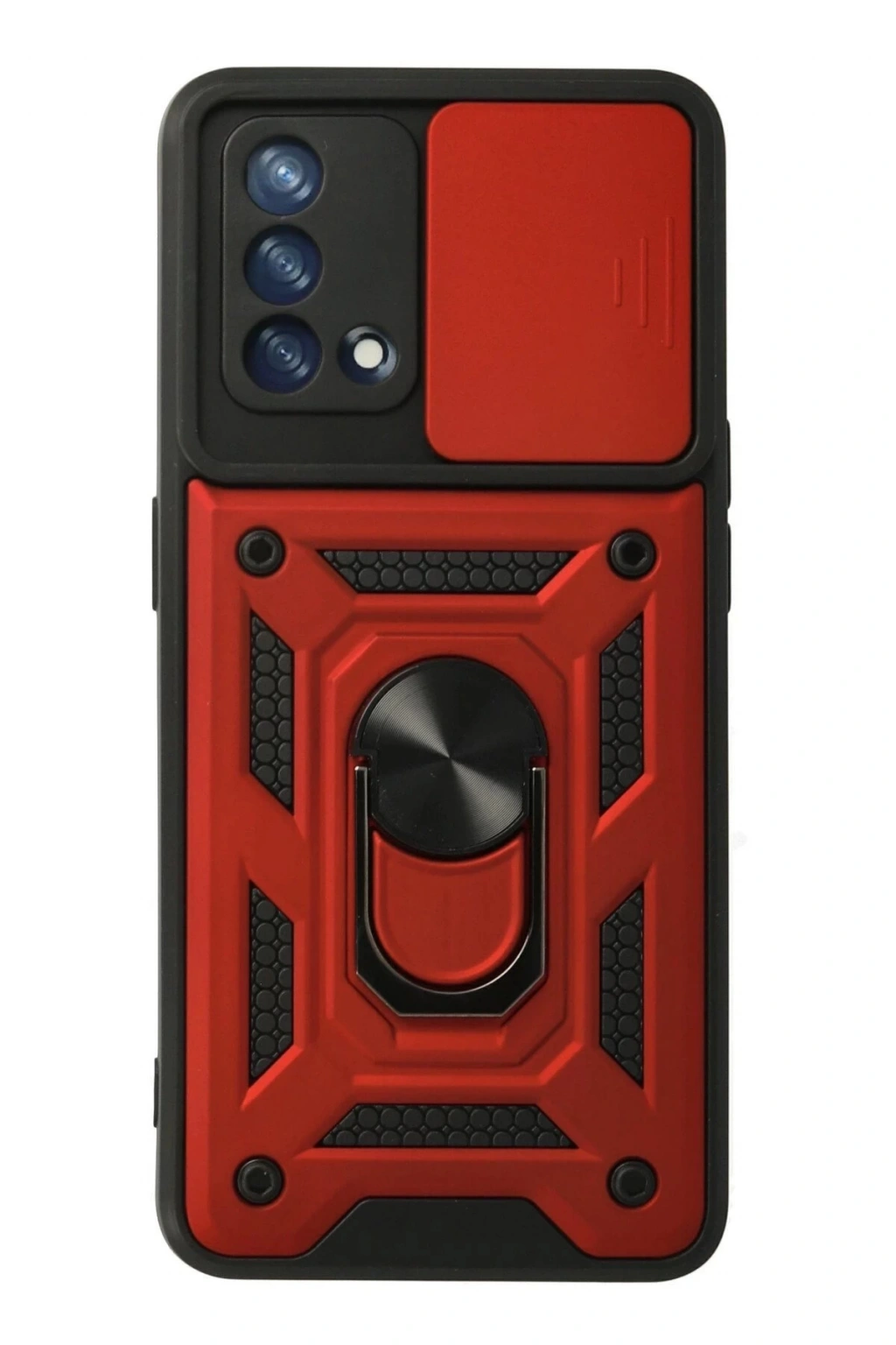 HarmonyAura Oppo A74 4g Kılıf Pars Lens Yüzüklü Silikon - Kırmızı