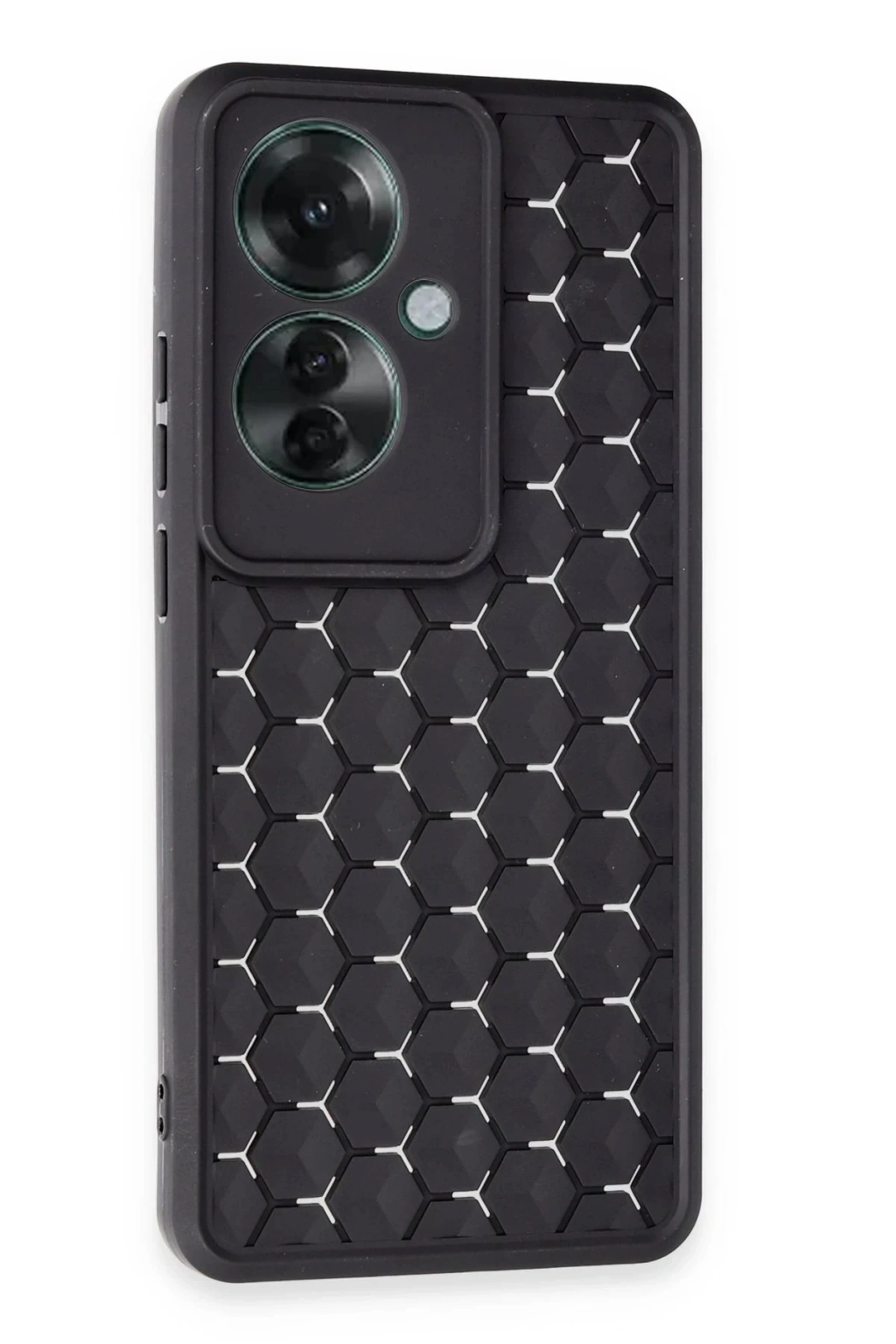 HarmonyAura Oppo Reno 11f Kılıf Petek Silikon Kapak - Siyah