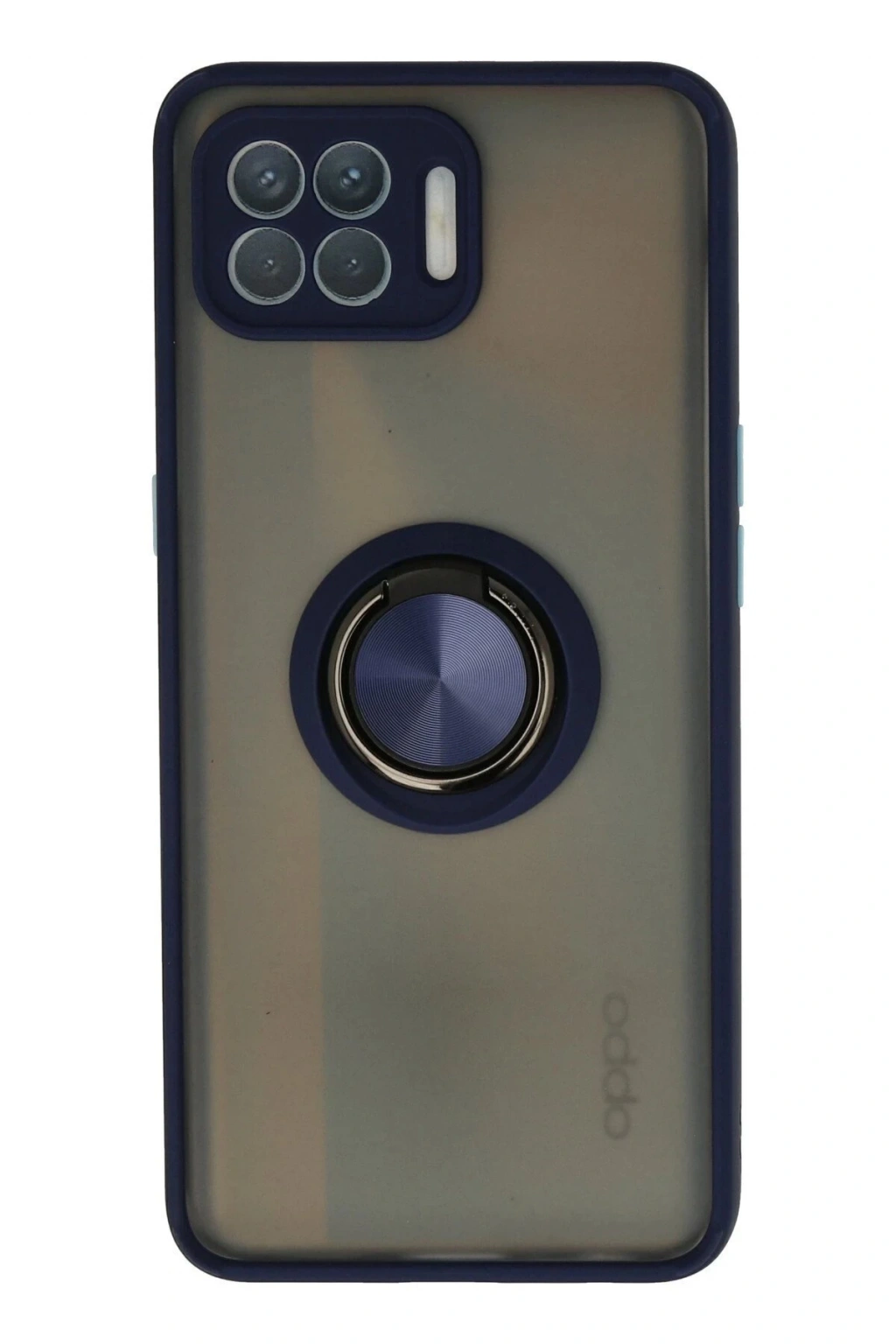 HarmonyAura Oppo Reno 4 Lite Kılıf Montreal Yüzüklü Silikon Kapak - Lacivert