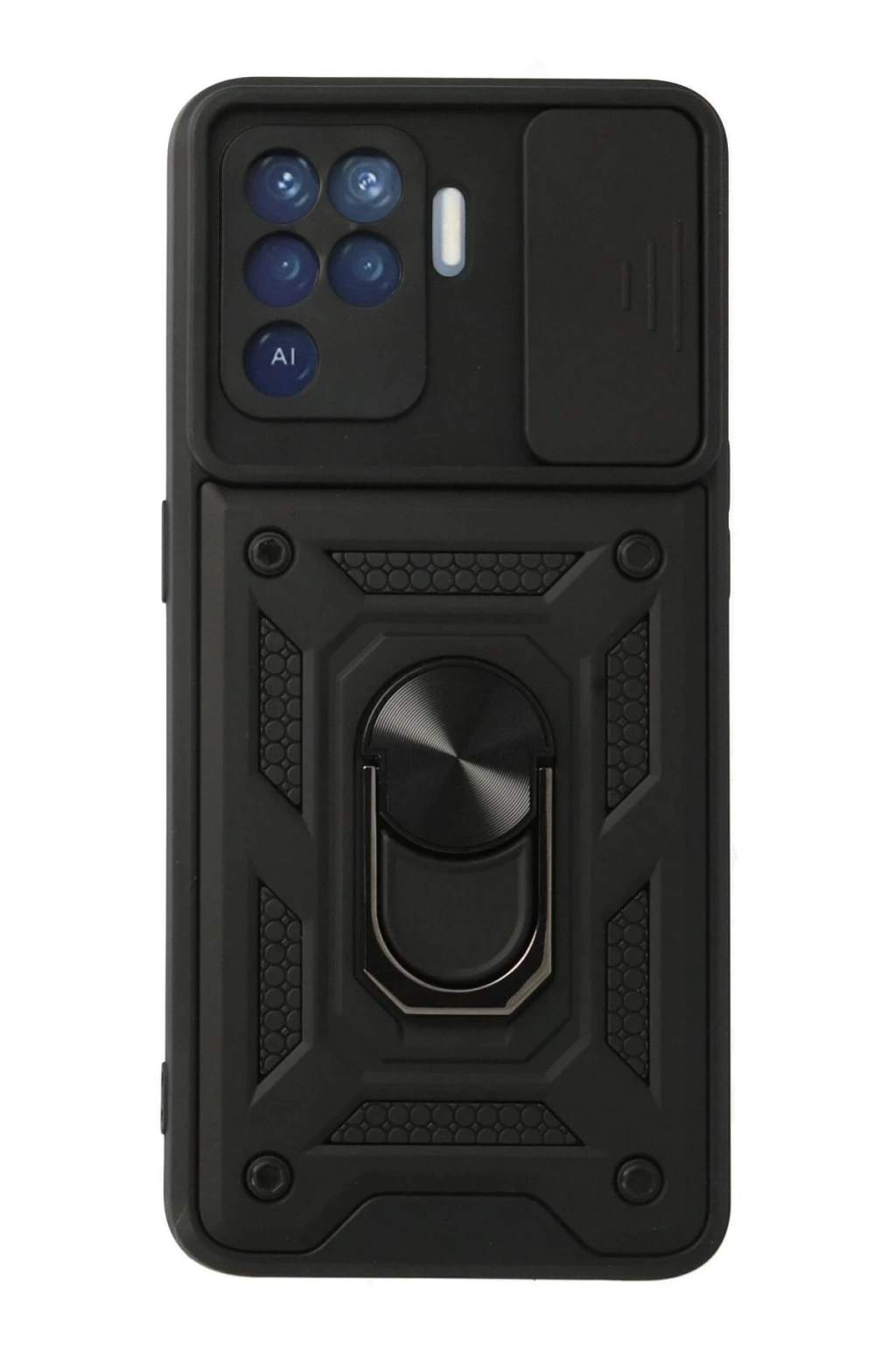 HarmonyAura Oppo Reno 5 Lite Kılıf Pars Lens Yüzüklü Silikon - Siyah
