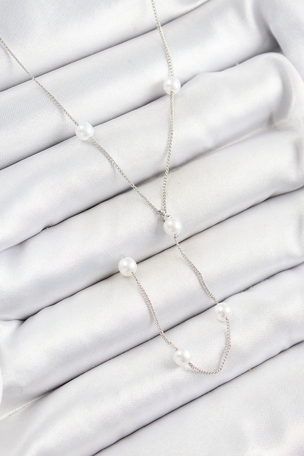 HarmonyAura Pirinç İnci Figürlü Y Model Gümüş Renk Kadın Kolye