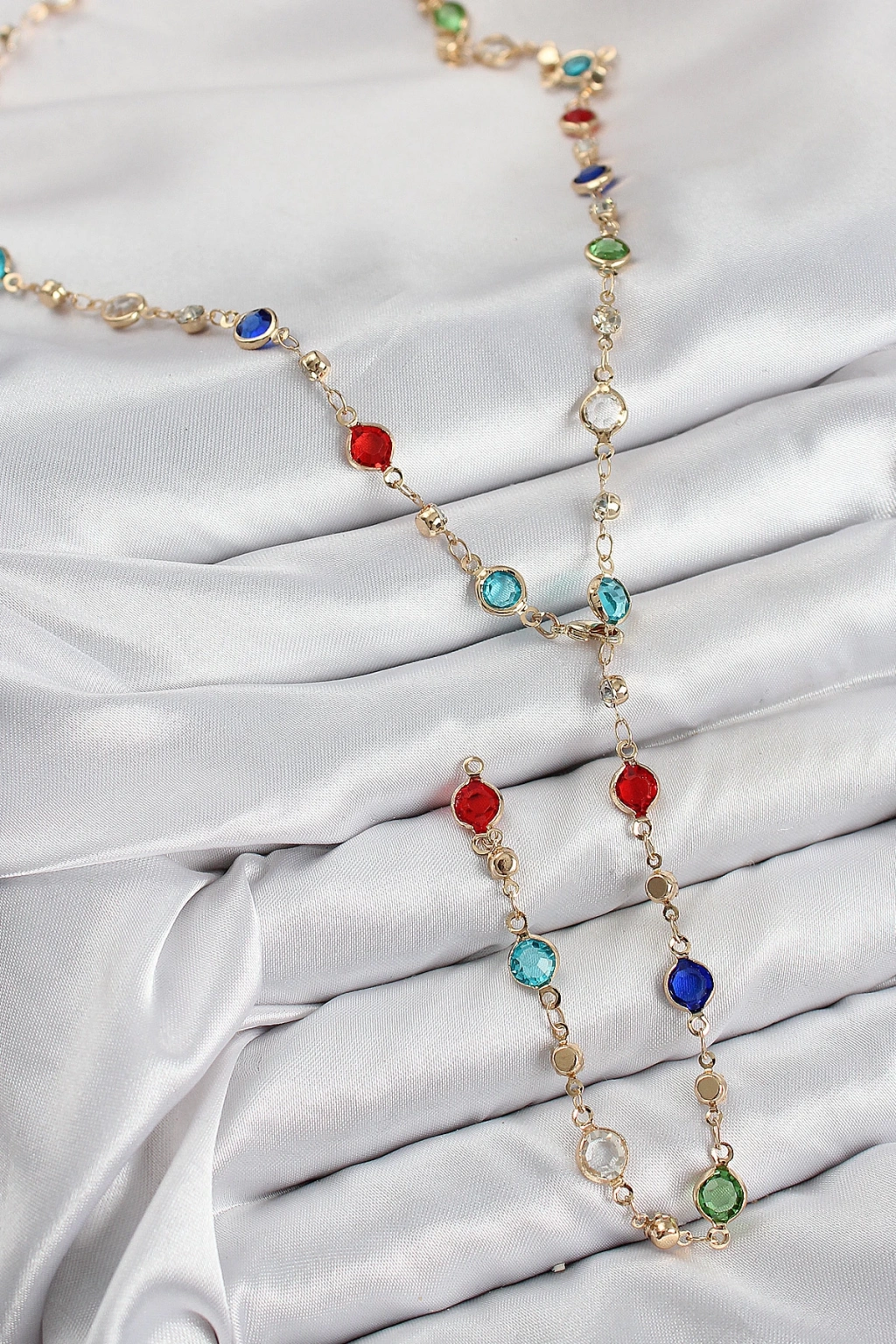 HarmonyAura Pirinç Renkli Zirkon Taşlı Model Gold Renk Kadın Y Kolye