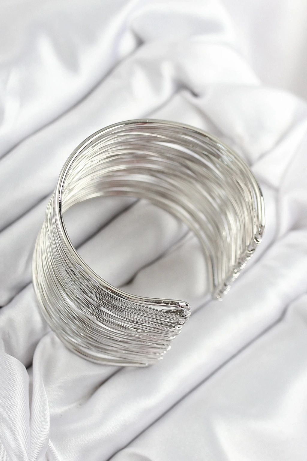 HarmonyAura Pirinç Tel Sarma Model Gümüş Renk Kadın Bileklilk