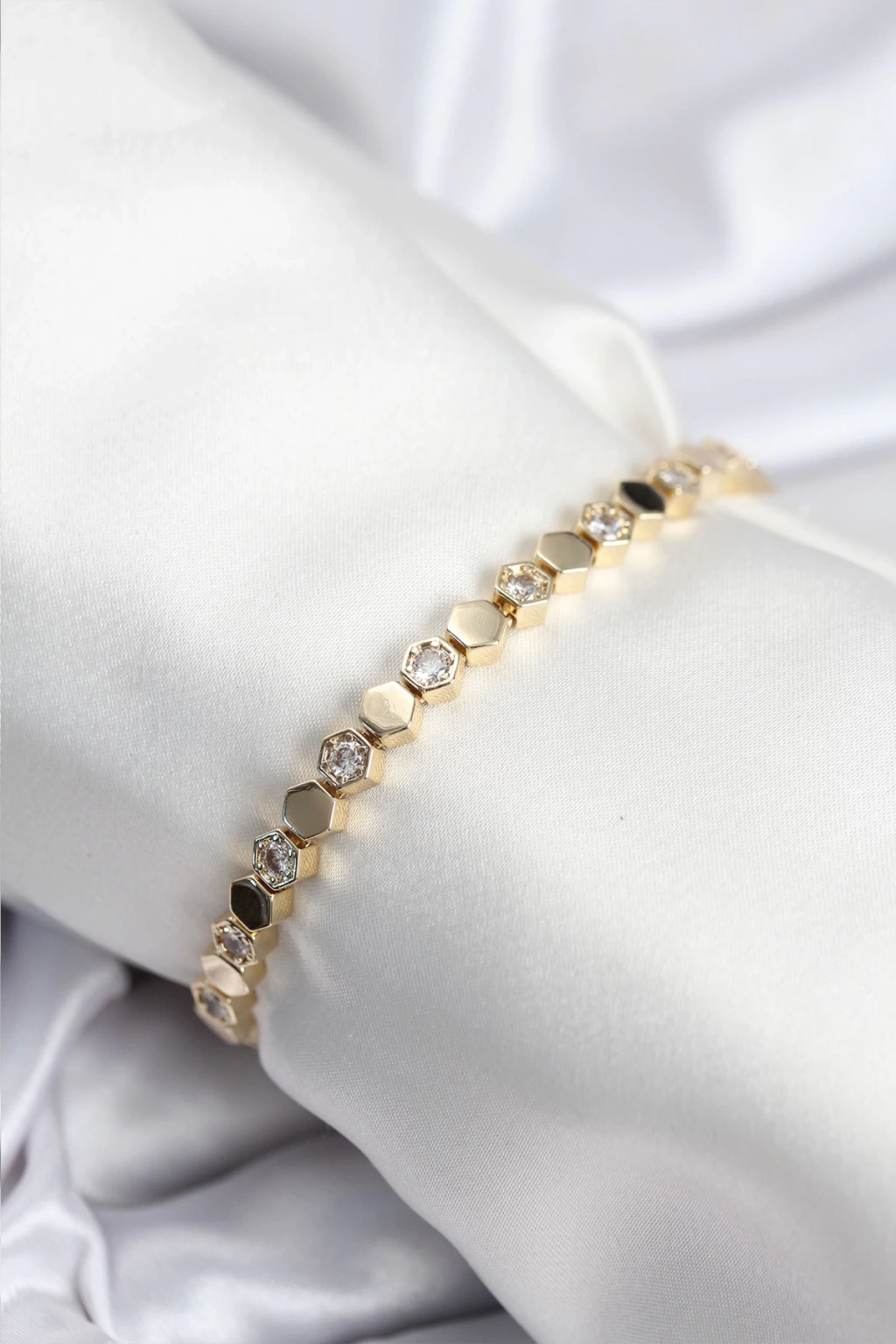 HarmonyAura Pirinç VIP Seri Gold Renk Petek Model Kadın Bileklik