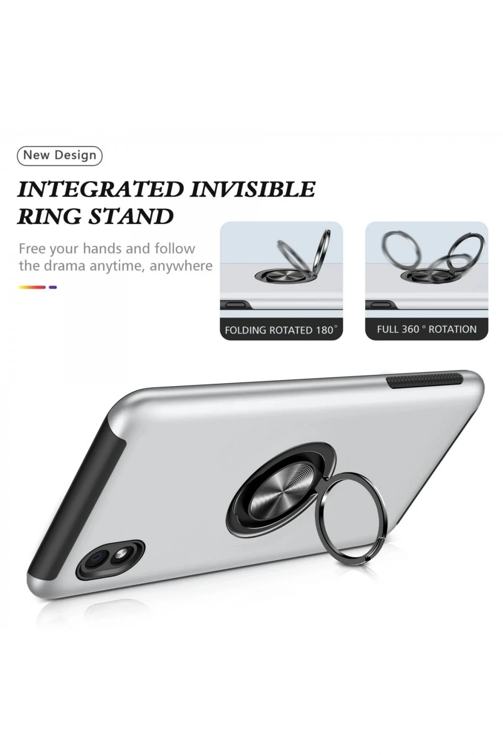 Kapak üzerinde yer alan 360° dönebilen silindir metal yüzük, hem stand işlevi görür hem de mıknatıs özelliği sayesinde araç içi manyetik telefon tutucularla tam uyum sağlar.