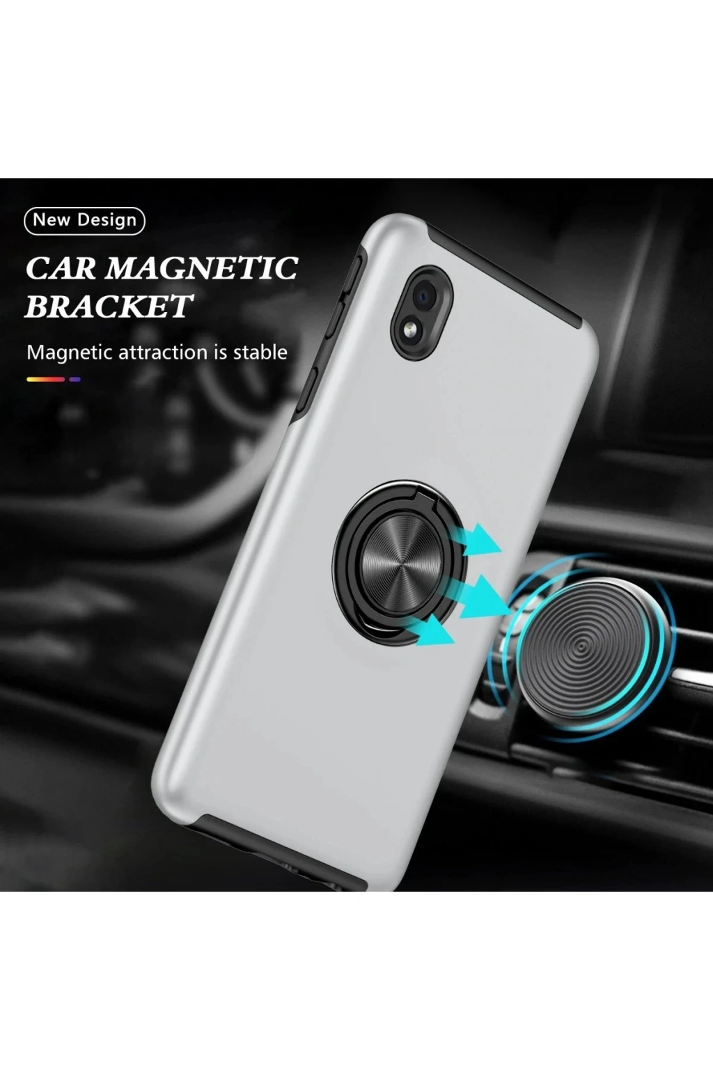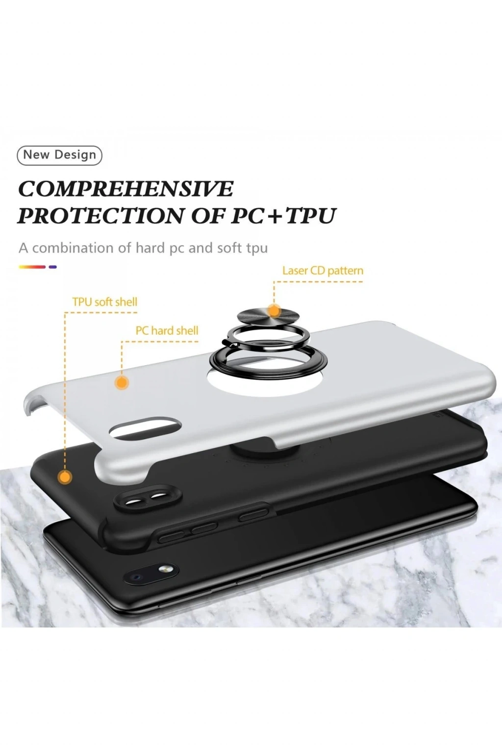 HarmonyAura Samsung Galaxy A01 Core Kılıf Elit Yüzüklü Kapak - Gümüş