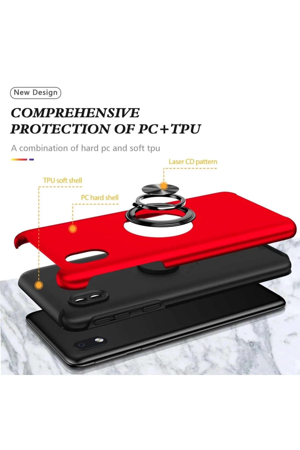 HarmonyAura Samsung Galaxy A01 Core Kılıf Elit Yüzüklü Kapak - Kırmızı