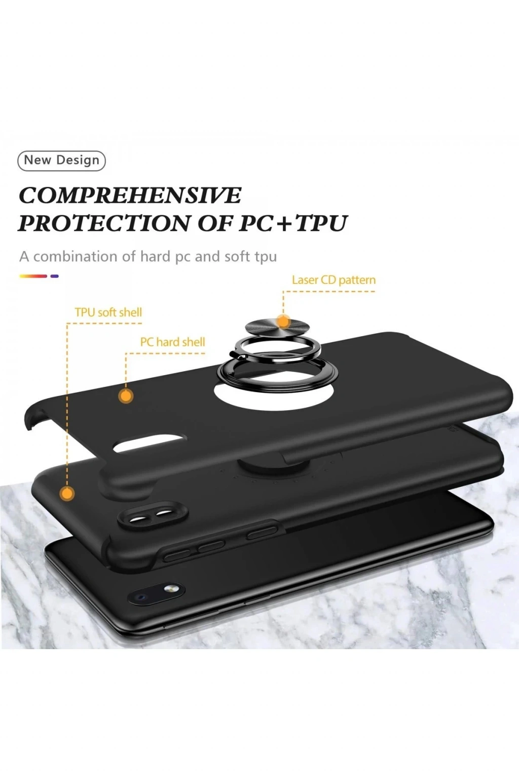 HarmonyAura Samsung Galaxy A01 Core Kılıf Elit Yüzüklü Kapak - Siyah