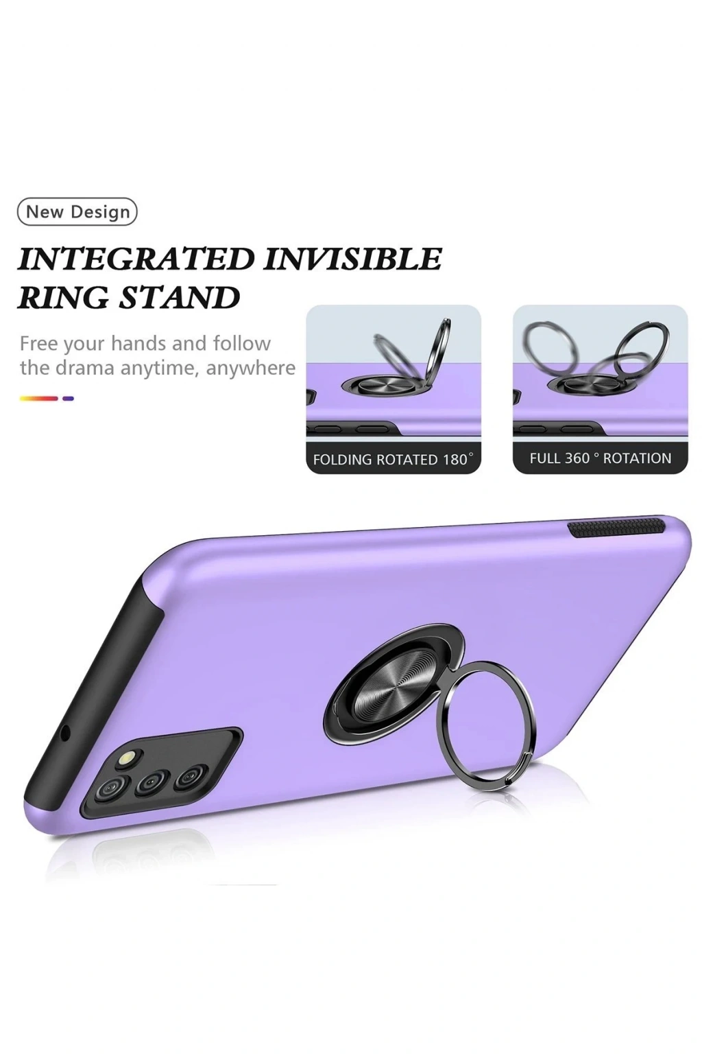 HarmonyAura Samsung Galaxy A02s Kılıf Elit Yüzüklü Kapak - Mor