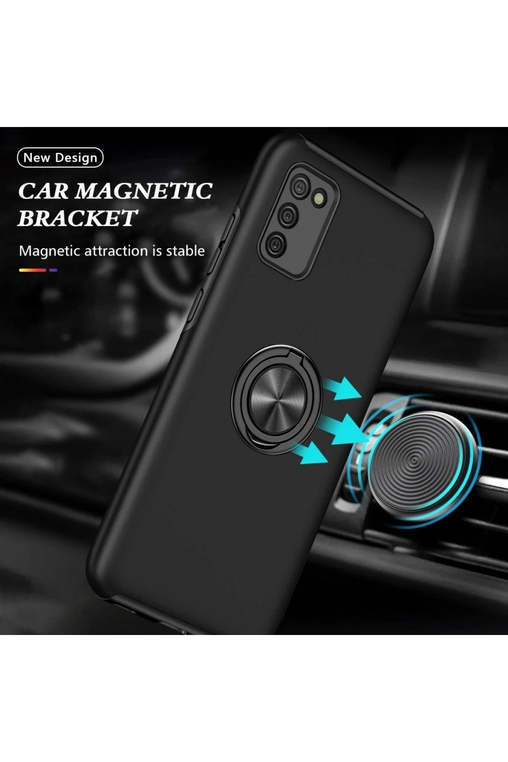HarmonyAura Samsung Galaxy A02s Kılıf Elit Yüzüklü Kapak - Siyah