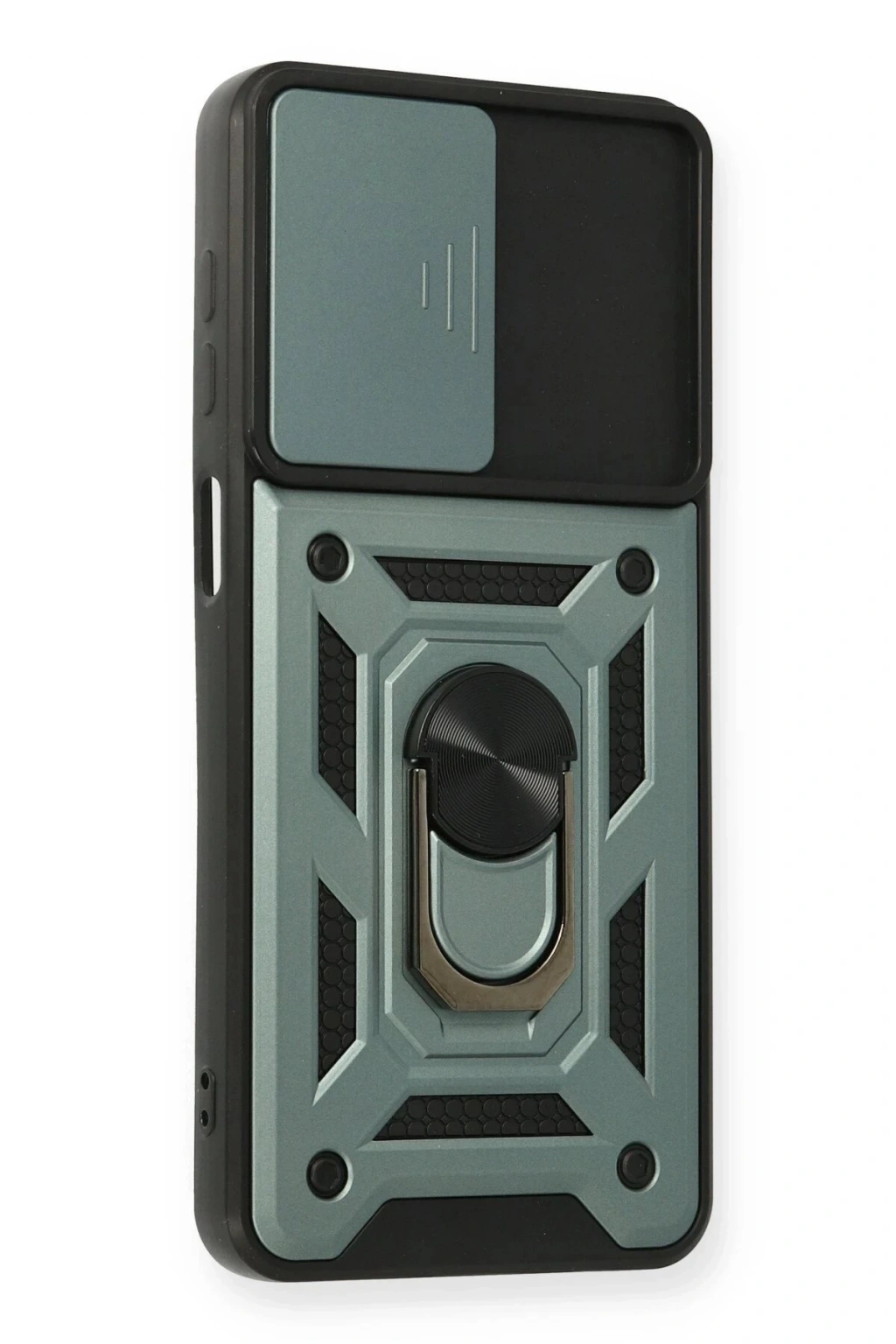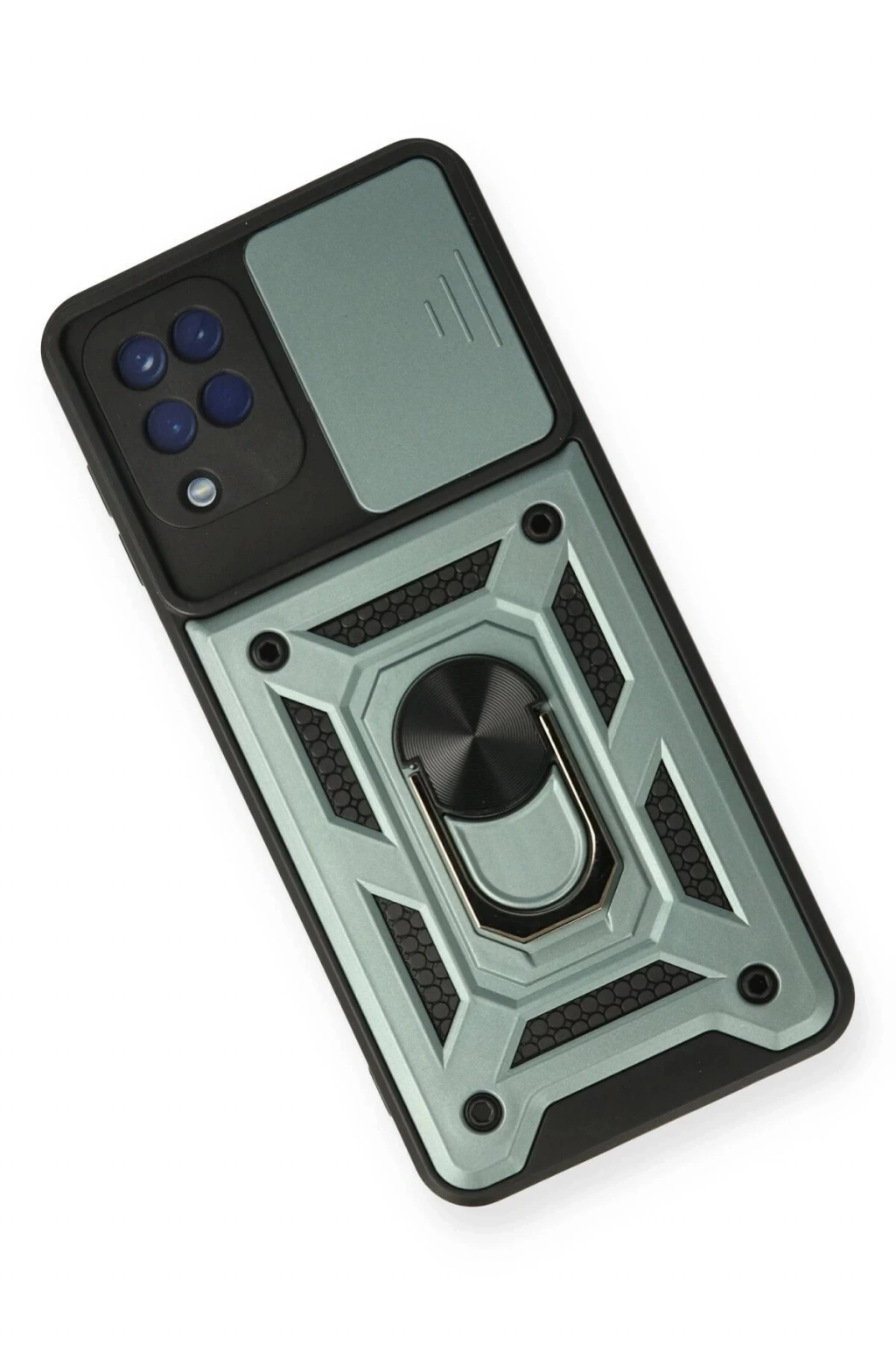 HarmonyAura Samsung Galaxy A12 Kılıf Pars Lens Yüzüklü Silikon - Yeşil