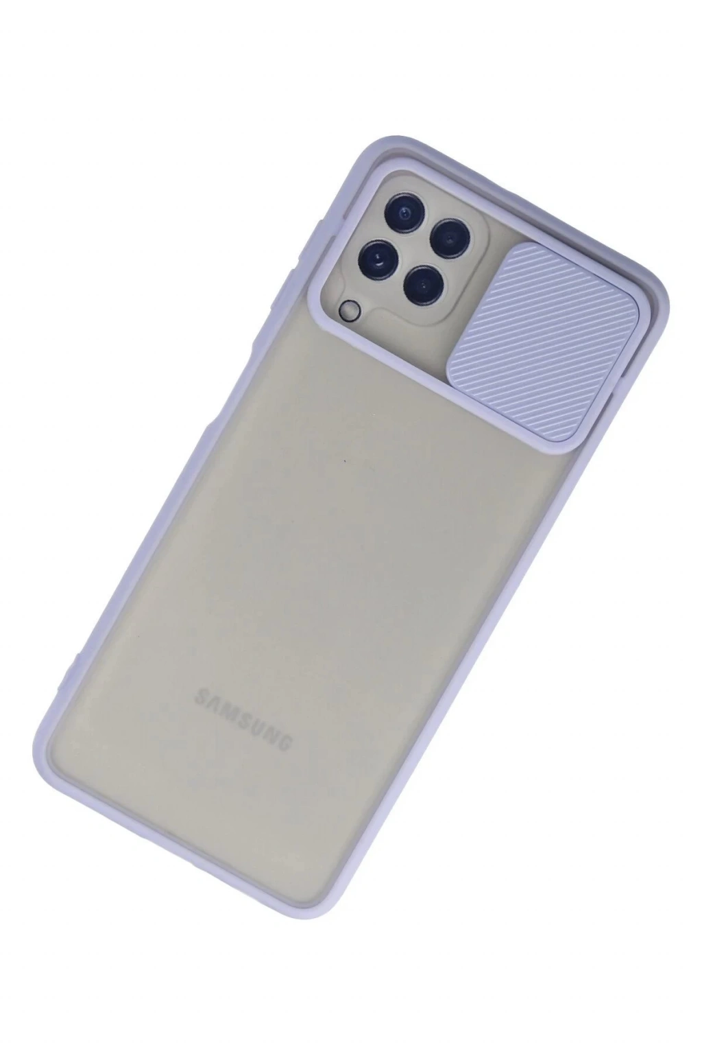 HarmonyAura Samsung Galaxy A22 Kılıf Palm Buzlu Kamera Sürgülü Silikon - Lila