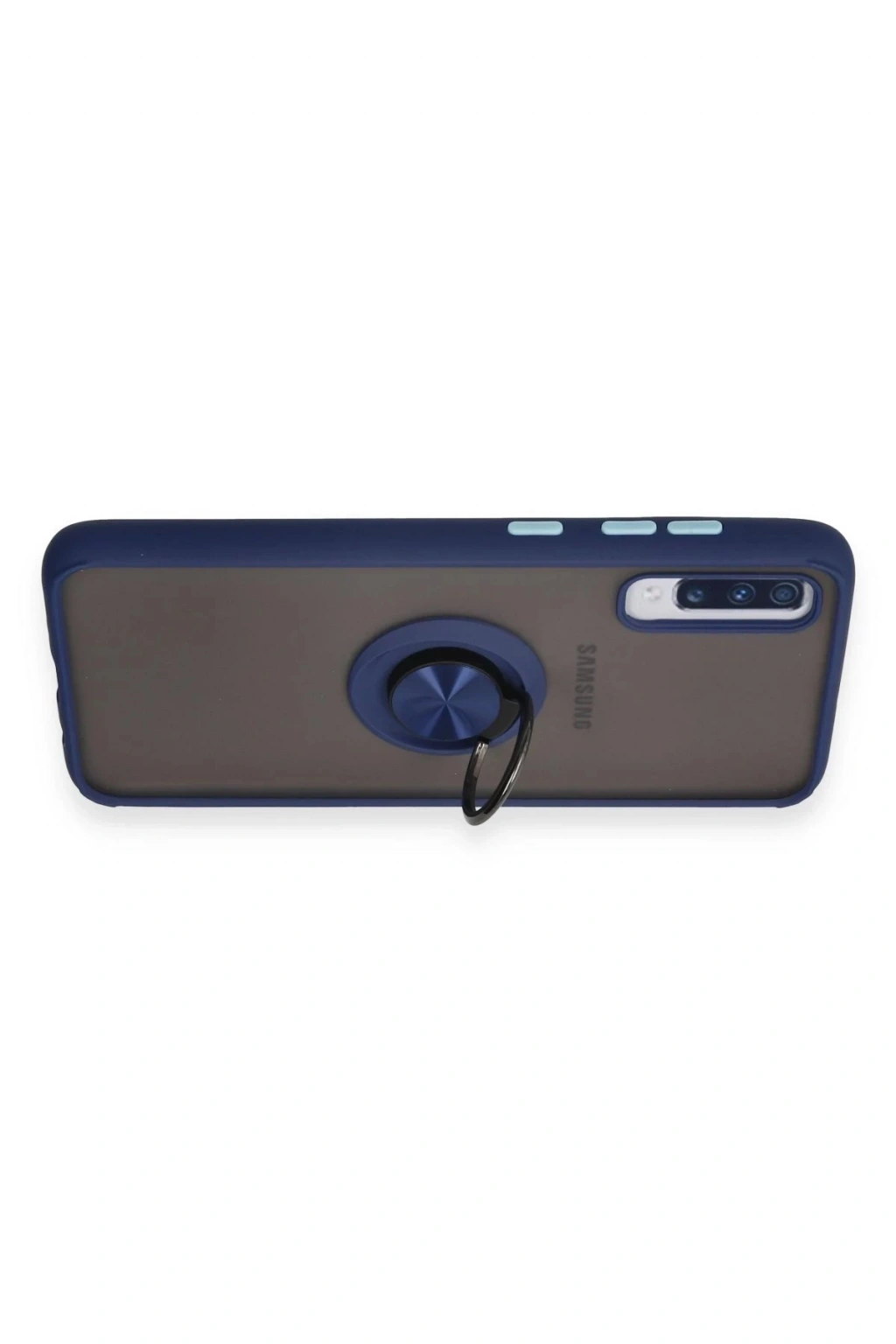 HarmonyAura Samsung Galaxy A70 Kılıf Montreal Yüzüklü Silikon Kapak - Lacivert