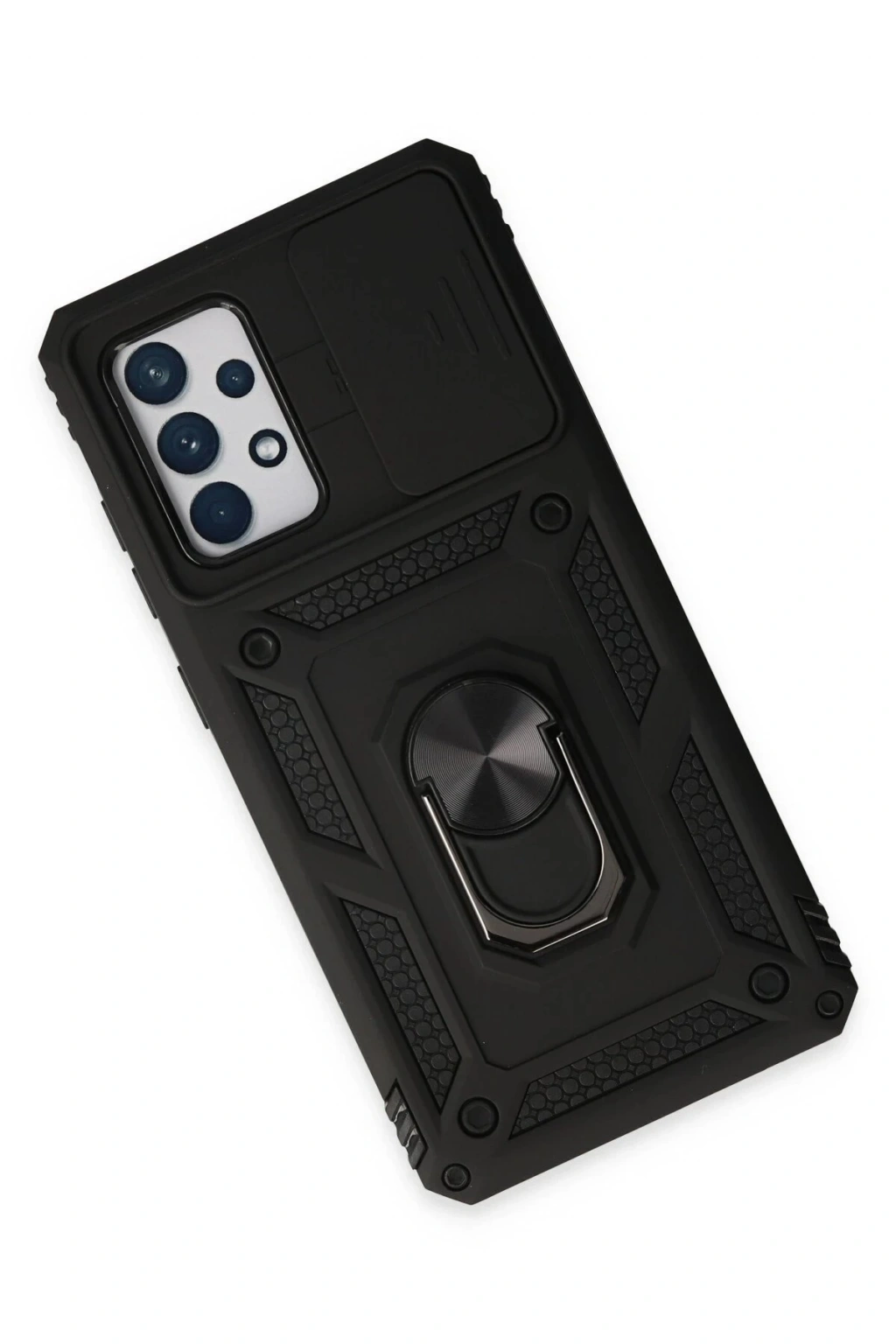 HarmonyAura Samsung Galaxy A72 Kılıf Pars Lens Yüzüklü Silikon - Siyah